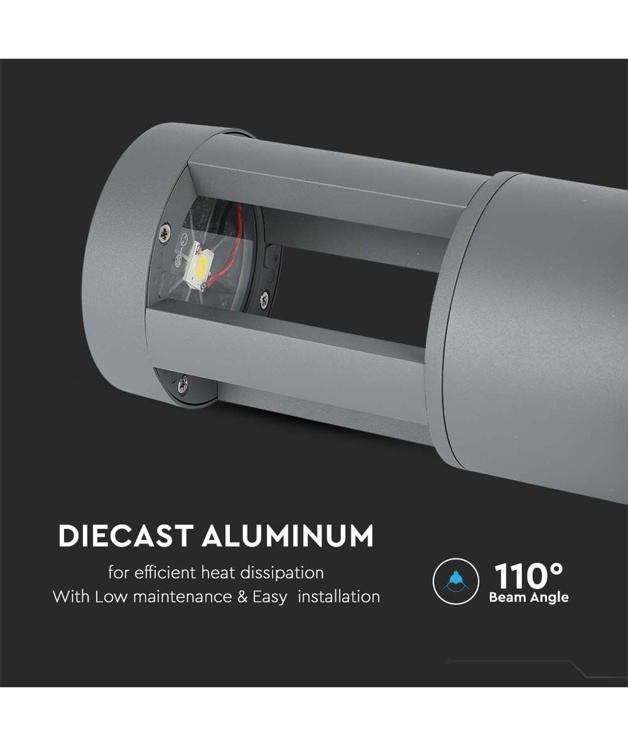 De lamp heeft een stijlvolle grijze afwerking en meet 250 x 108 x 148 mm. Het is de perfecte keuze voor zowel binnen- als buitengebruik dankzij de IP65-certificering, die hem bestand maakt tegen waterdruppels en regen.
