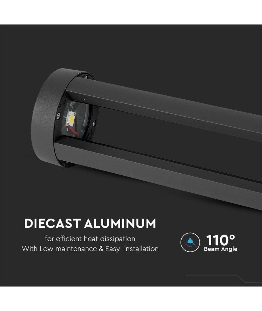 De zwarte behuizing met elegant design heeft afmetingen van 800 x 108 x 148 mm, waardoor het een subtiele maar opvallende toevoeging is aan elke omgeving. De robuustheid van de lamp wordt benadrukt door de IP65-classificatie, wat betekent dat hij geschikt is voor buitengebruik en bestand is tegen waterdruppels en regen.