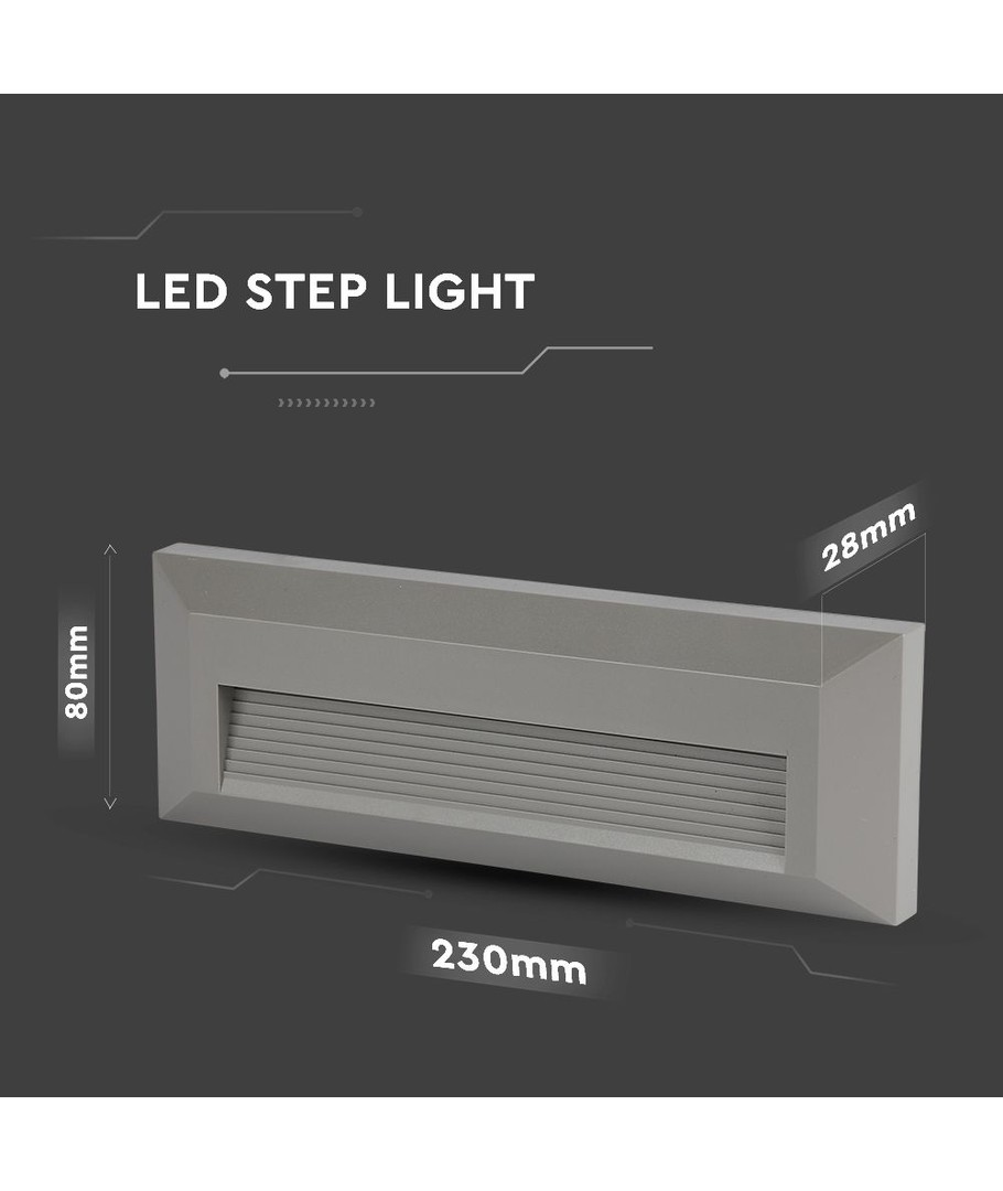 De geïntegreerde 3W trapverlichting is ontworpen om een elegante en effectieve verlichtingsoplossing te bieden voor trappen, zowel binnen als buiten. Met een verfijnde rechthoekige silhouet en een strak grijs huis past dit LED-verlichtingsproduct naadloos in elke architectonische stijl.
