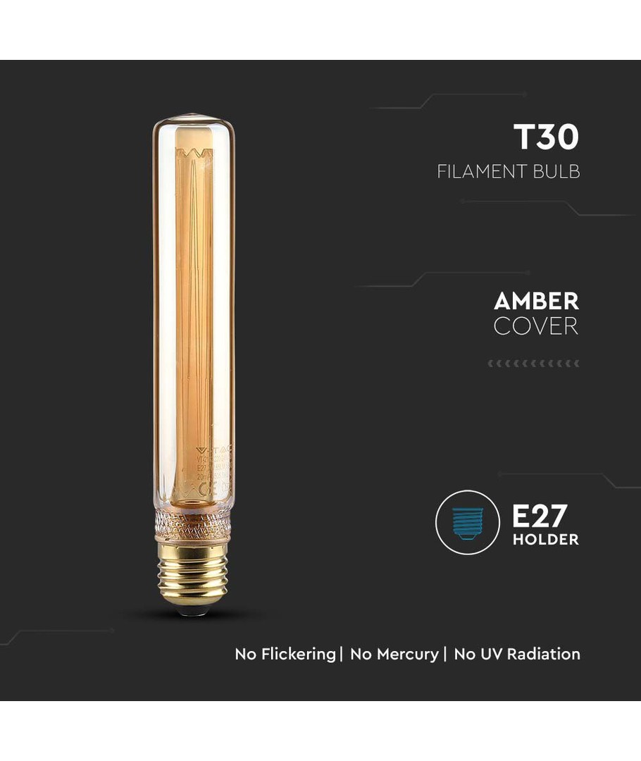 Ervaar het betoverende effect van de T30 LED lamp, die moderne verlichtingstechnologie combineert met een nostalgische esthetiek. Deze lamp is perfect om een gezellige en warme sfeer te creëren in elke ruimte.