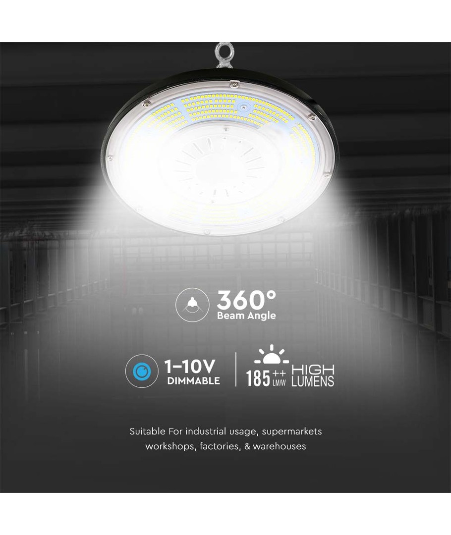 Ongeacht het toepassingsgebied biedt deze LED Highbay een economische en milieuvriendelijke verlichtingsoplossing met 185lm/W, waardoor het een ideale keuze is voor wie zowel hoge kwaliteit als energie-efficiëntie zoekt.