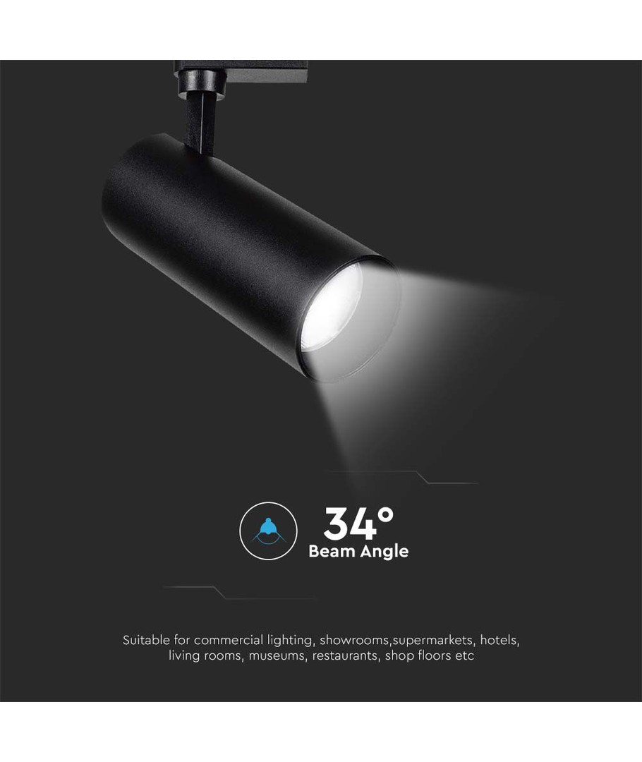 Ervaar een uitstekende verlichtingsoplossing met deze LED Railspot, die moderne technologie combineert met hoge prestaties. Met een vermogen van 35W en een lichtsterkte van 3000 lumen, levert deze railspot een gefocust licht met een straalhoek van 34 graden. Dit zorgt voor een gecontroleerde en precieze verlichting.