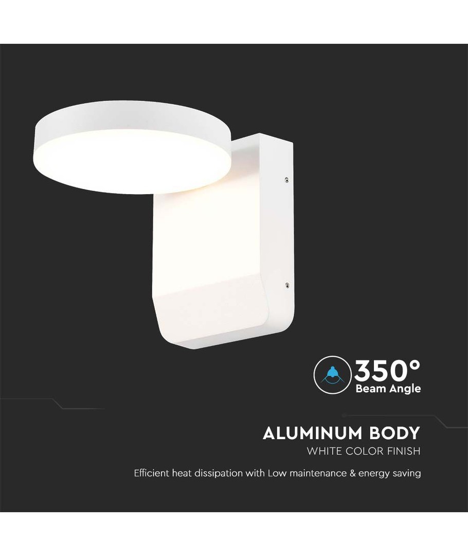 De lampbehuizing heeft een IP65 classificatie, wat betekent dat deze robuust genoeg is om spatwater en regen te weerstaan, waardoor hij ideaal is voor buitengebruik. Het compacte, strakke ontwerp past in de meeste omgevingen en de witte, ronde behuizing geeft een moderne uitstraling.