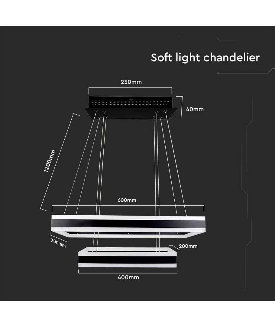 De afmetingen van de kroonluchter zijn 1200 x 600 mm en hij maakt deel uit van de innovatieve V-Tac Pro serie. Hoewel de IP20-certificering betekent dat hij niet waterbestendig is, is hij ideaal voor binnengebruik, in woon- of eetkamers, waar hij een exclusieve sfeer ondersteunt.