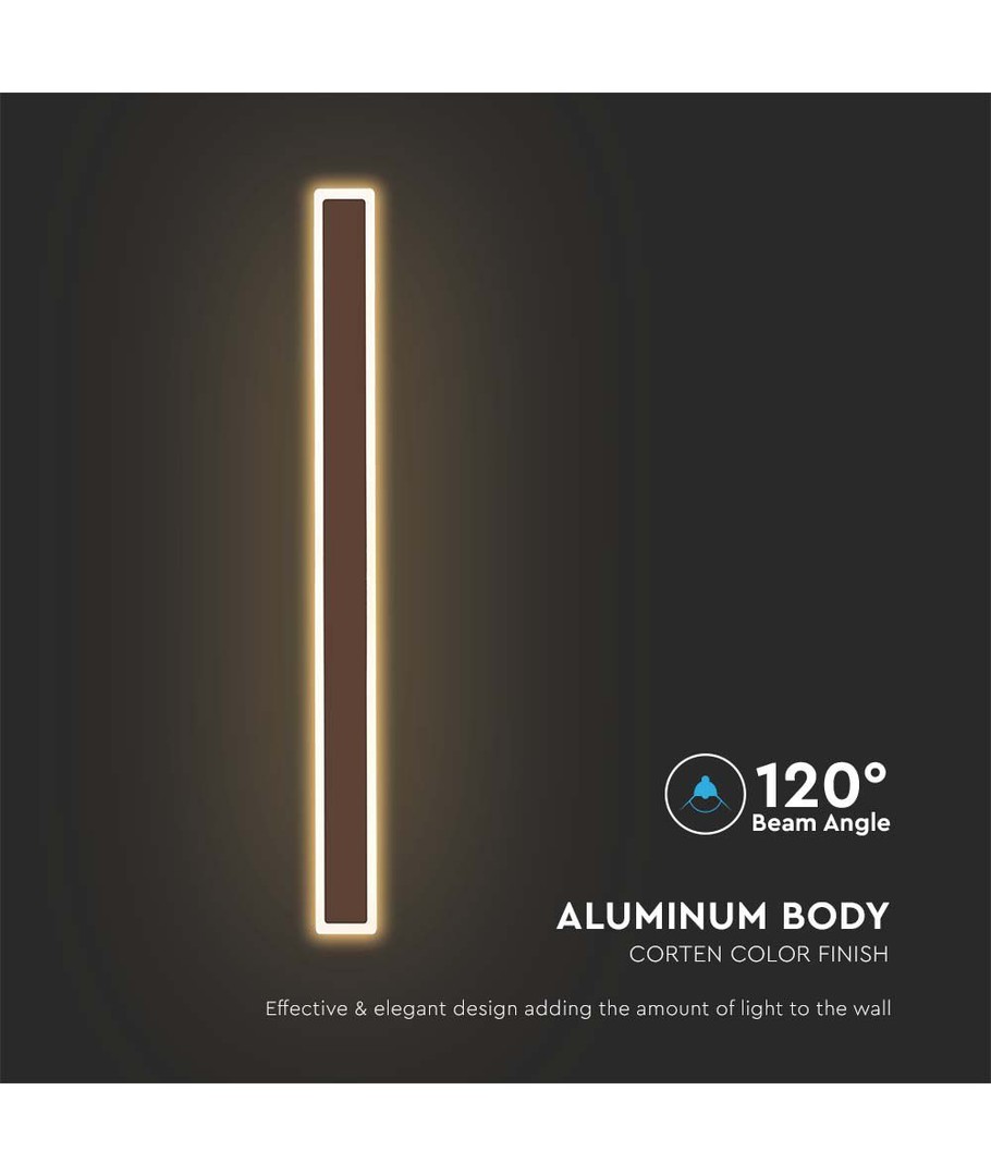 Laat u inspireren door deze wandlamp met LED van V-Tac, die strak design en hoge prestaties combineert. Met een vermogen van 17W biedt deze lamp niet alleen krachtig licht, maar ook een mooie corten-afwerking die elegantie toevoegt aan elke omgeving.