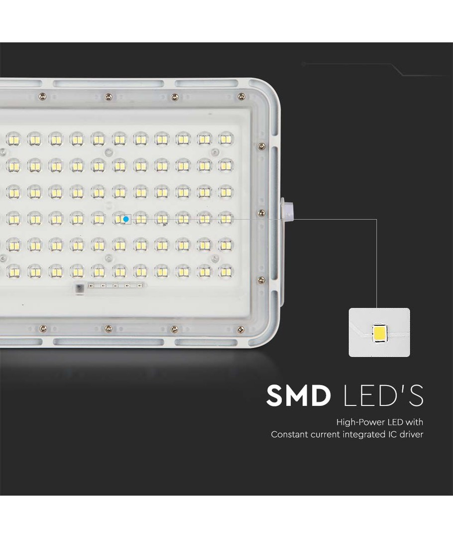 Met de VT LED Solar Schijnwerper 120W krijgt u een krachtige en energiezuinige verlichtingsoplossing, perfect voor zowel particuliere als commerciële buitenruimtes. Deze schijnwerper is uitgerust met een geïntegreerde LED-lichtbron die een lichtsterkte van 1200 lumen levert, wat ervoor zorgt dat het gebied goed verlicht is.