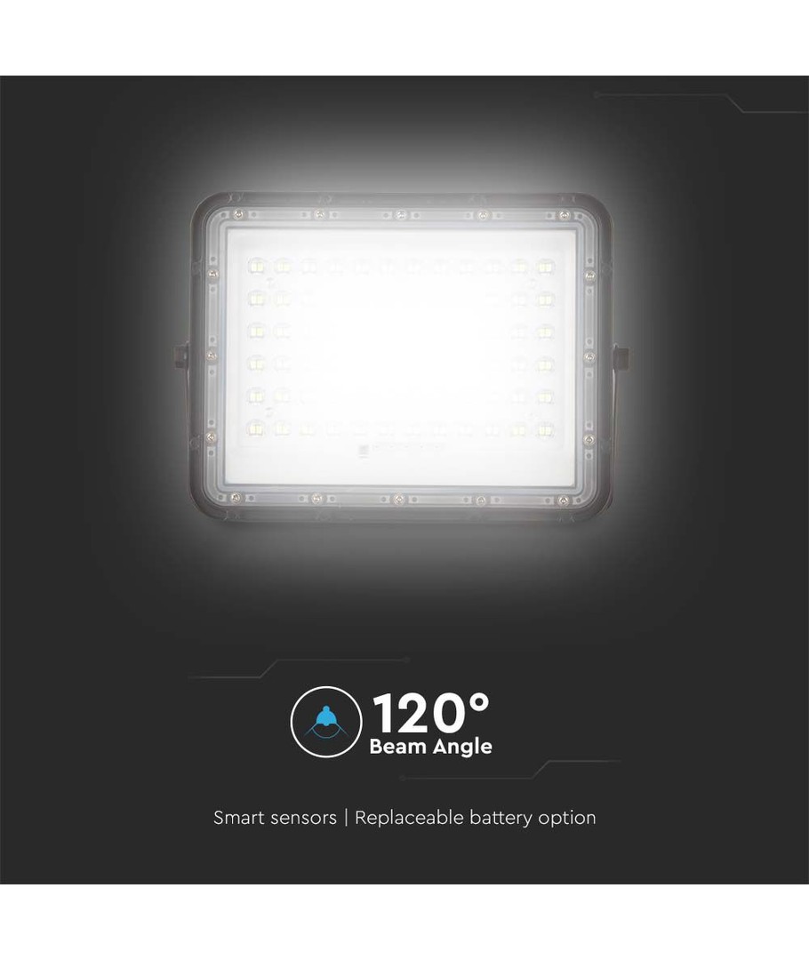 Ervaar krachtige verlichting met onze VT LED Solar Schijnwerper, die geavanceerde technologie combineert met een praktisch ontwerp. Met een indrukwekkende lichtsterkte van 1200 lumen zorgt deze schijnwerper voor een gelijkmatige en krachtige lichtverdeling dankzij de brede spreiding van 120 graden.