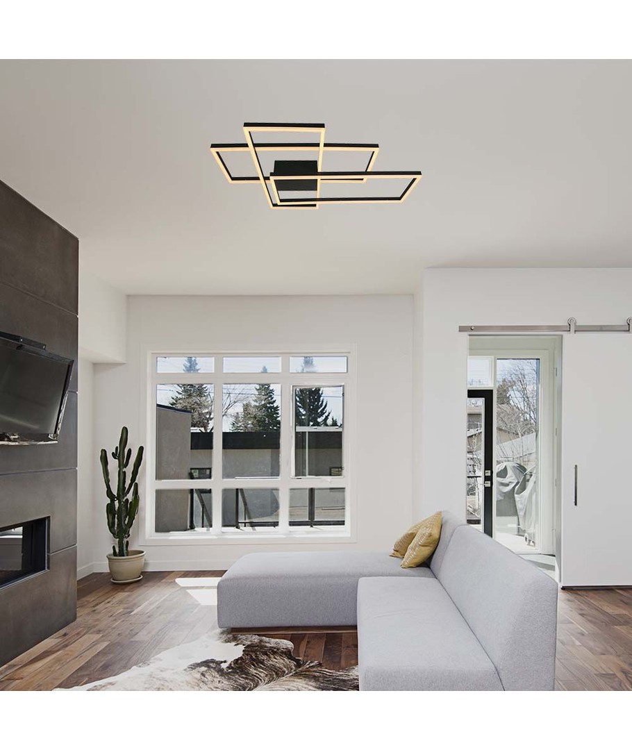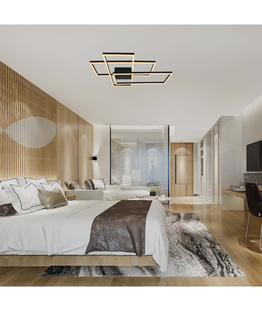 Ervaar de perfecte balans tussen functie en design met onze 47W LED decoratieve plafondlamp. Met afmetingen van 905 x 100 x 670 mm en een elegante zwarte afwerking, past deze lamp in elk modern huis.