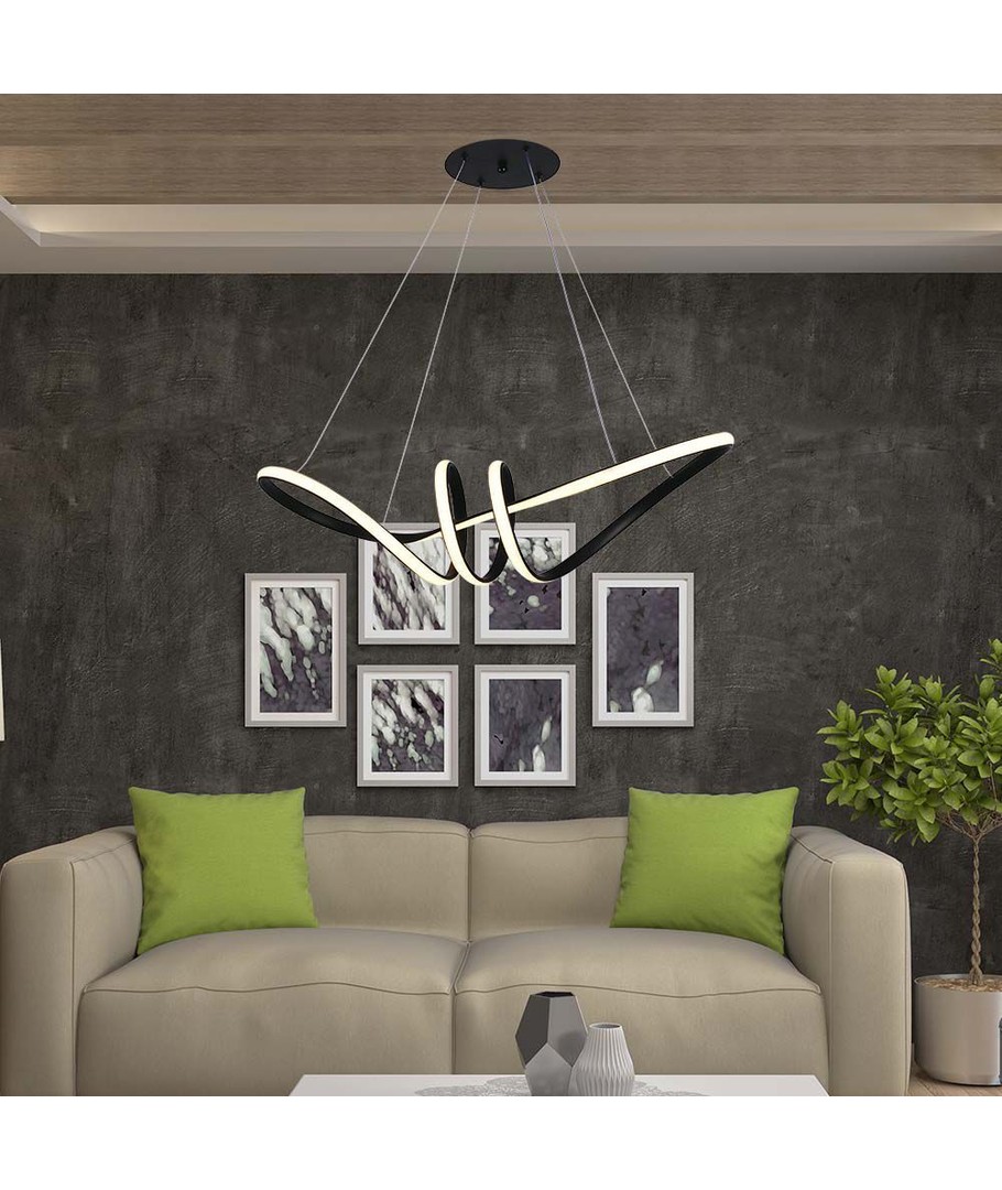 Presenteert een stijlvolle LED hangende decoratieve lamp ontworpen om de esthetiek van elke ruimte te verbeteren met zijn elegante, zwarte behuizing. Met de afmetingen 720 x 300 mm past deze lamp perfect boven eettafels, in woonkamers of waar dan ook een moderne touch gewenst is.