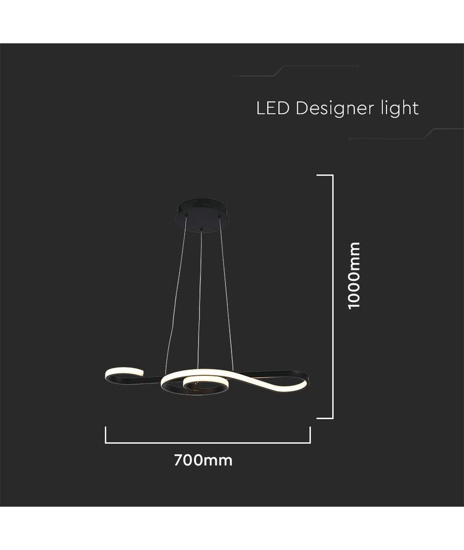 De afmetingen van de lamp van 700 x 250 mm geven hem een opvallende aanwezigheid in de ruimte, terwijl het moderne zwarte design gemakkelijk past bij verschillende interieurstijlen. De IP20-classificatie betekent dat hij niet waterbestendig is, dus hij is het meest geschikt voor droge binnenruimtes.
