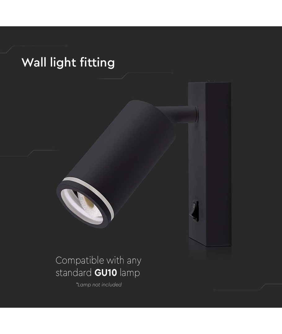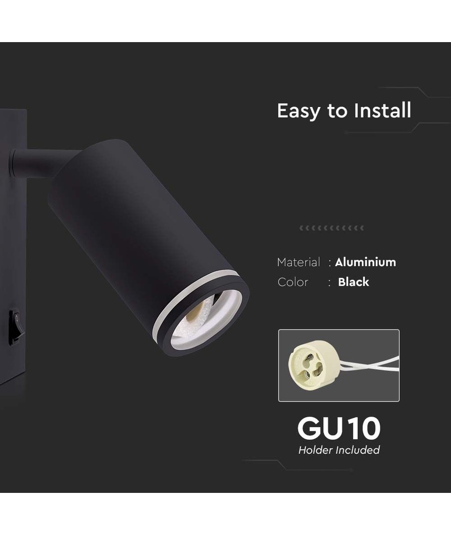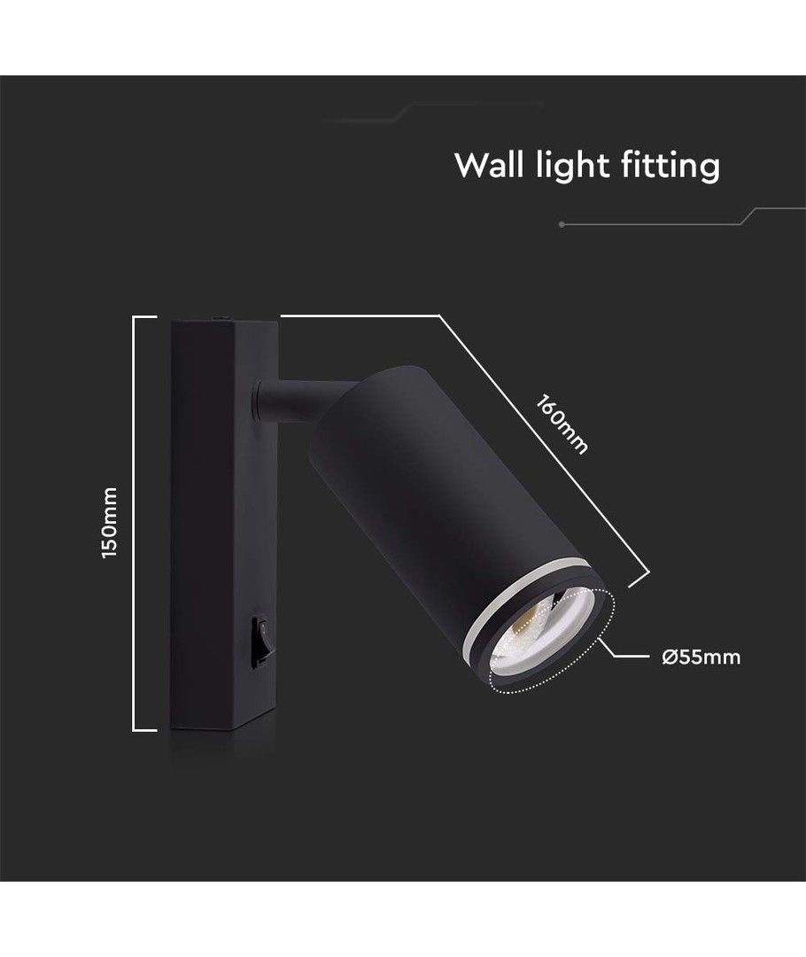 Wandgemonteerde GU10 spot in een zwarte behuizing biedt moderne verlichting voor elk interieur.