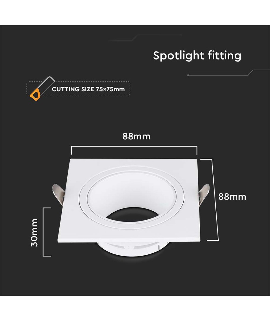 De compacte afmeting van de spotlamp van 88 x 30 x 88 mm maakt hem ideaal voor verschillende installatielocaties. Voor een probleemloze montage is een gatmaat van 75 mm vereist, wat de installatie eenvoudig en rechttoe rechtaan maakt.