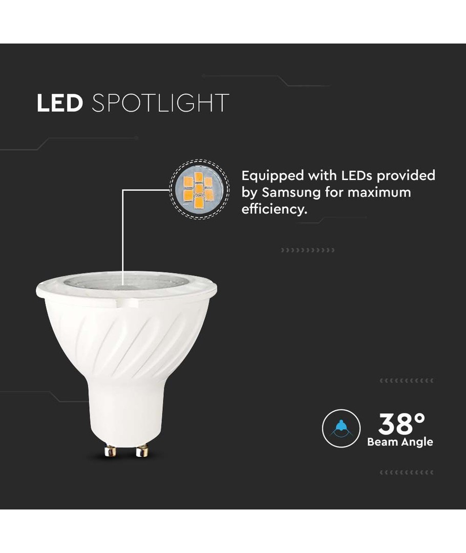 Deze 6W GU10 kunststof spotlamp is de ideale oplossing voor wie op zoek is naar energiezuinige verlichting van hoge kwaliteit voor thuis of op de werkplek. Hij maakt gebruik van een Samsung LED-chip en biedt een betrouwbare 5 jaar fabrieksgarantie, wat zorgt voor langdurige prestaties en gemoedsrust.