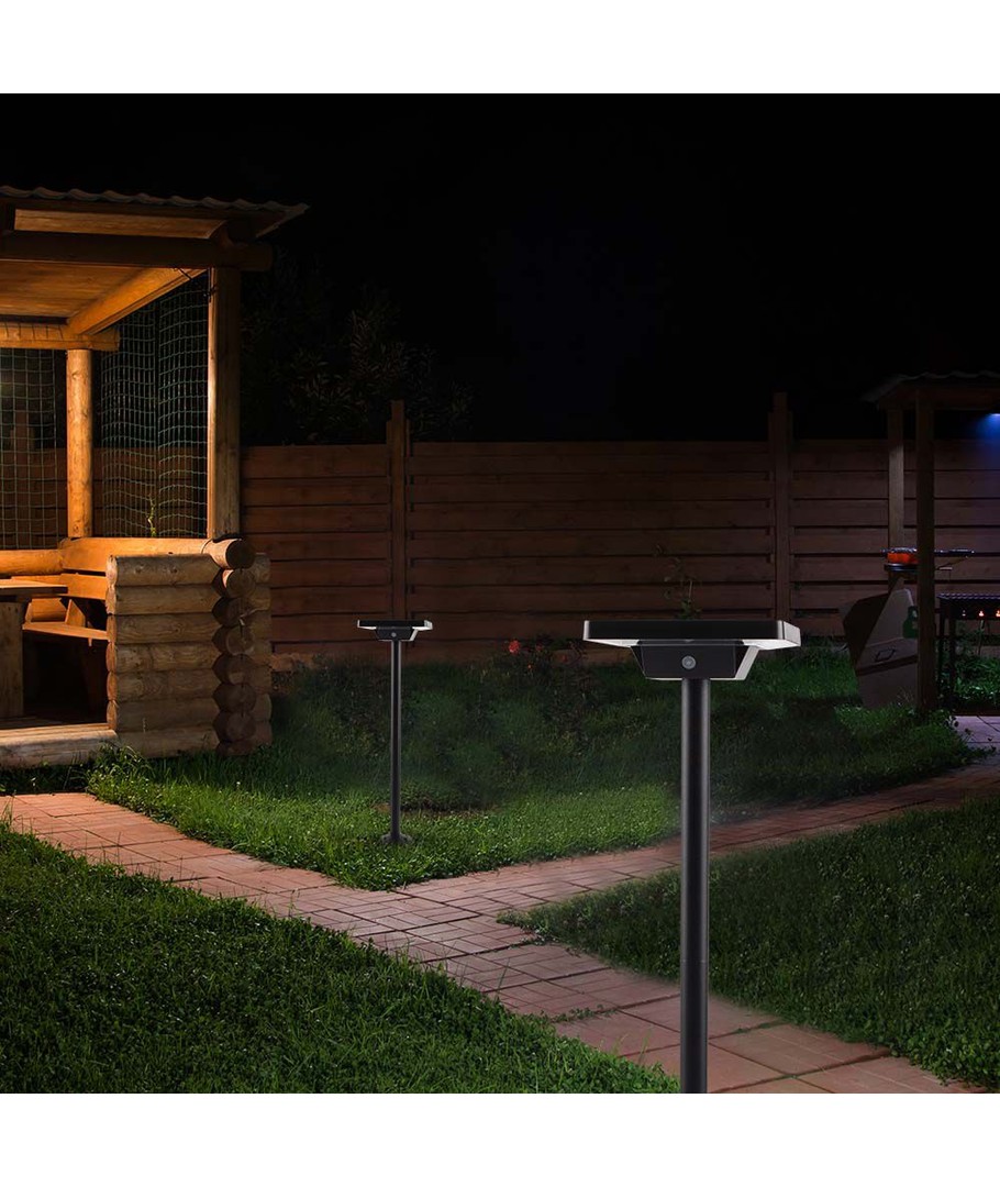 De tuinlamp is vervaardigd uit duurzaam aluminium en heeft een moderne zwarte afwerking, wat het een stijlvolle en robuuste keuze maakt voor elke tuin. Met een IP65-classificatie kan de lamp gemakkelijk bestand zijn tegen buiteninvloeden zoals spatwater en regen, zodat je het hele jaar door zonder zorgen van verlichting kunt genieten.