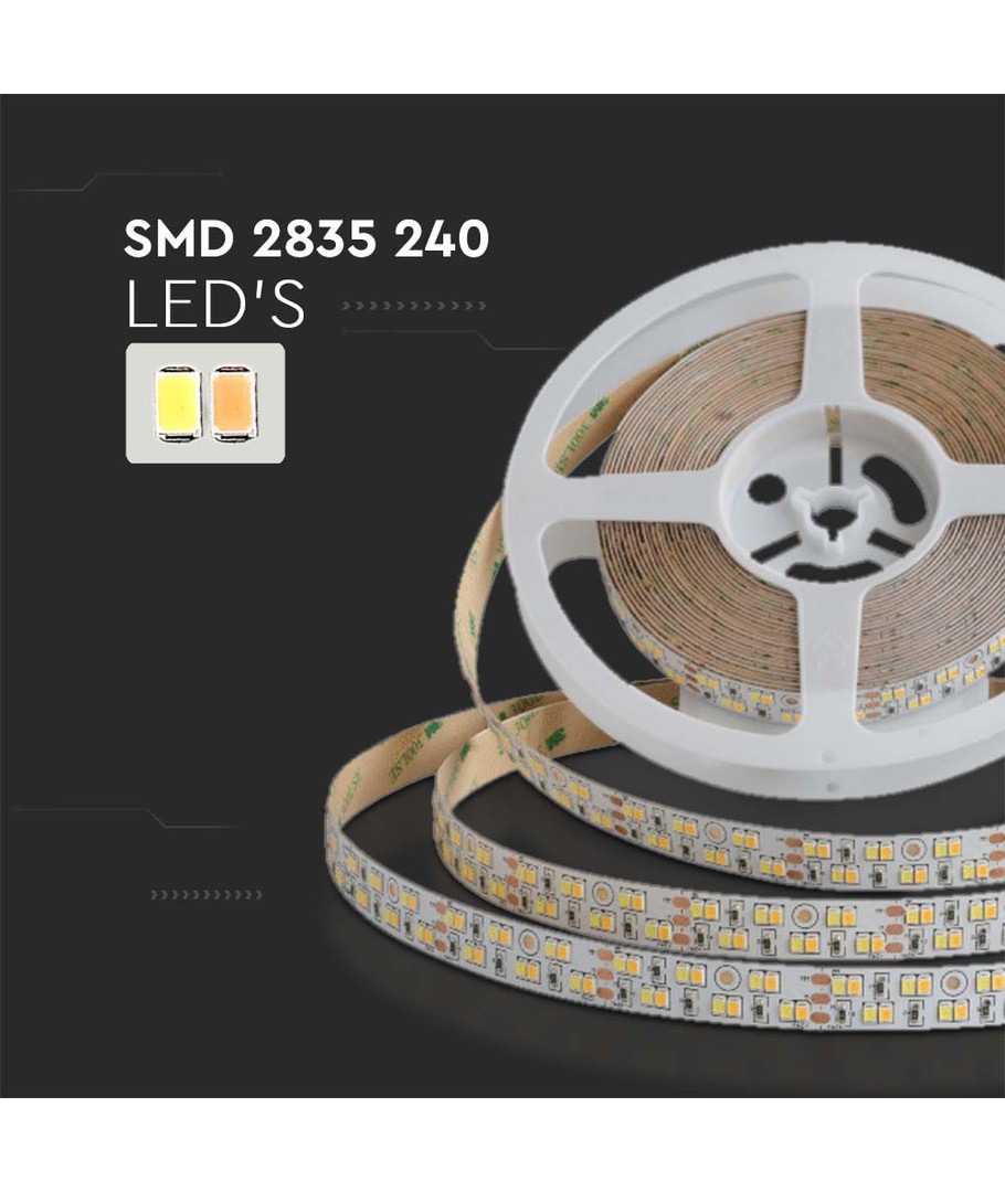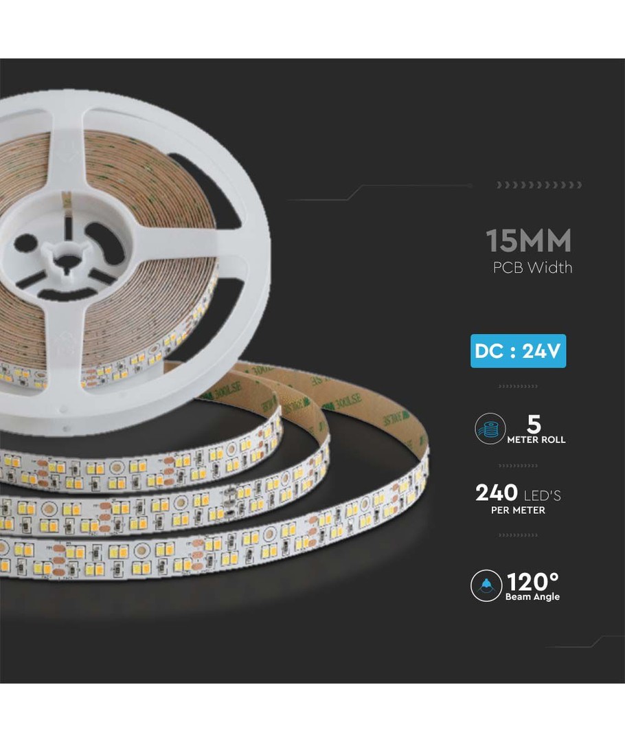 240 LED Strip Light 21W - 3in1, IP20, 24V, 15mm, Wit, Dubbele Printplaat, 5m/Rol is een veelzijdige en efficiënte verlichtingsoplossing voor verschillende behoeften.
