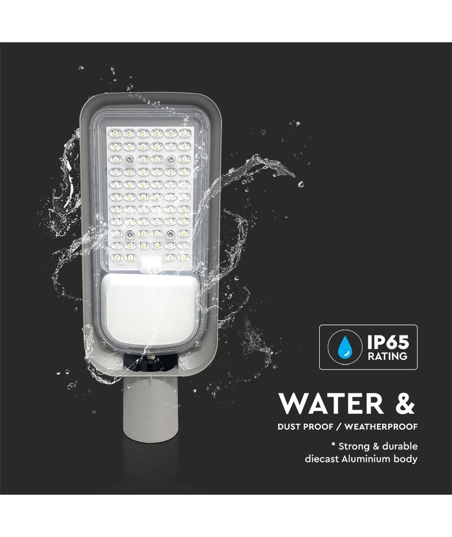Voor degenen die op zoek zijn naar een energiezuinige oplossing voor het verlichten van buitenruimtes, biedt deze 30W LED straatlamp een uitstekende optie. Met een lichtsterkte van 2505 lumen werpt deze lamp een krachtig licht met een brede spreiding van 115 graden. Dit zorgt voor een gelijkmatige en brede lichtverdeling, waardoor hij ideaal is voor grote gebieden.