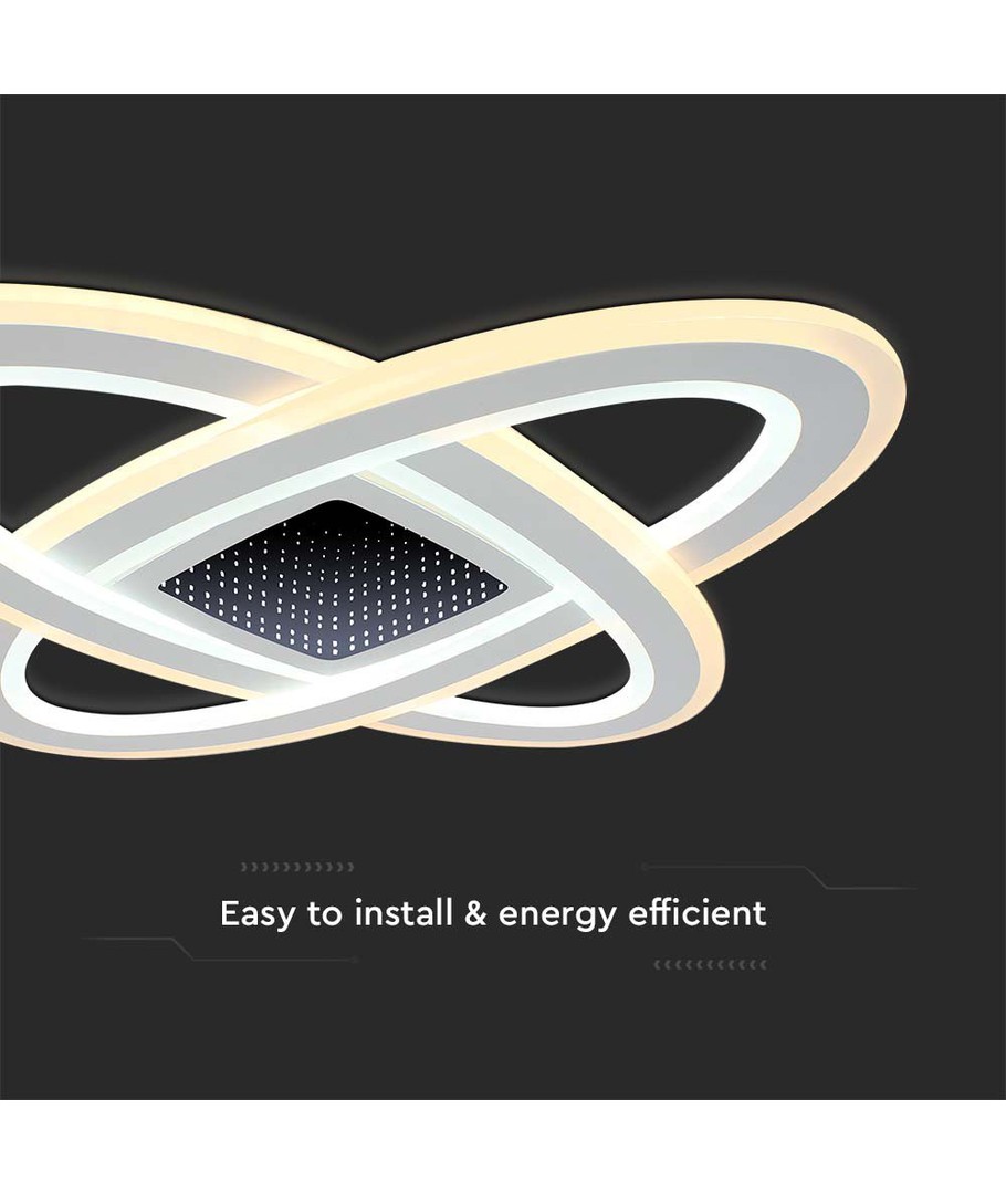 Profiteer van de slimme lichtinstellingen waarmee u kunt wisselen tussen verschillende lichtkleuren en -intensiteiten, om precies de sfeer te creëren die u wenst. Deze plafondlamp is niet alleen een functionele lichtbron, maar ook een decoratieve toevoeging die uw ruimtes een moderne touch geeft.