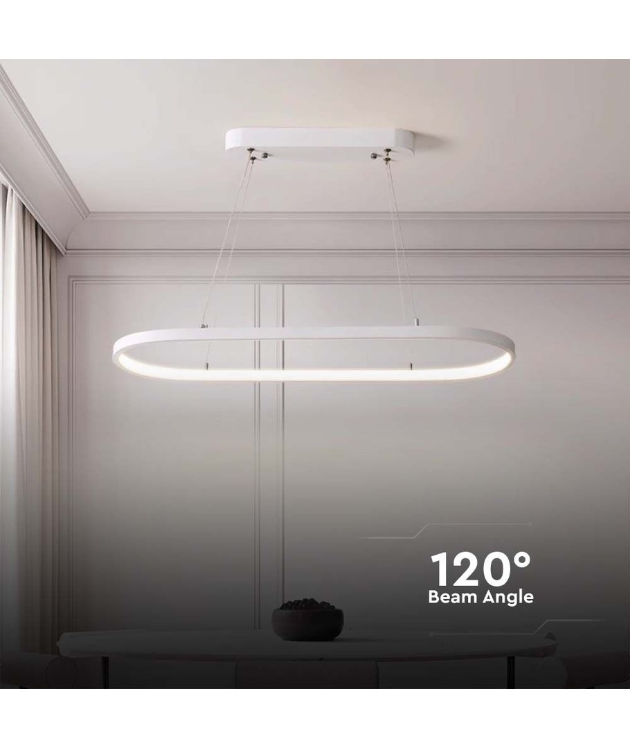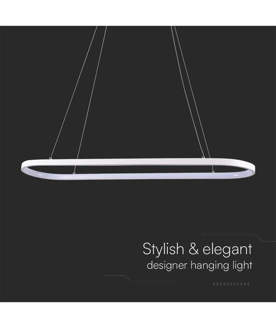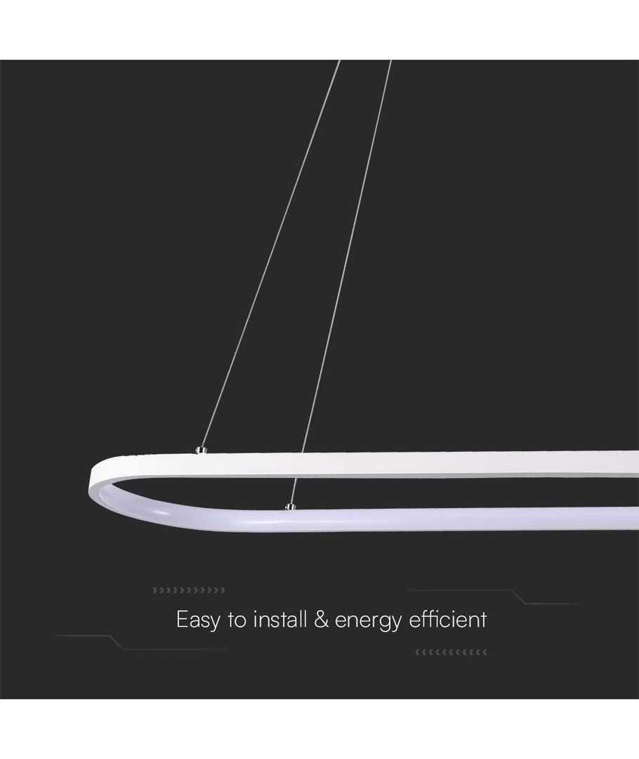De lamp meet 1080 x 200 x 790 mm en past perfect in moderne interieurs met zijn elegante en minimalistische stijl. De witte behuizing voegt een vleugje elegantie toe zonder de ruimte te overheersen.