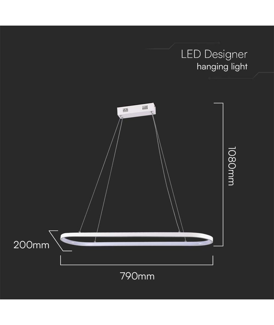 De lamp heeft afmetingen van 1080 x 200 x 790 mm, waardoor het een opvallend maar elegant element in de ruimte is. Met een IP20-classificatie is hij ideaal voor binnenshuis gebruik, maar niet geschikt voor vochtige omgevingen.