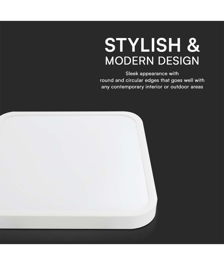 Ontworpen met een vierkant wit frame, meet deze lichtarmatuur 250 x 65 x 250 mm. De IP44-classificatie betekent dat het bestand is tegen vochtige lucht en spatwater, waardoor het geschikt is voor zowel binnen- als bepaalde buitengebruik.