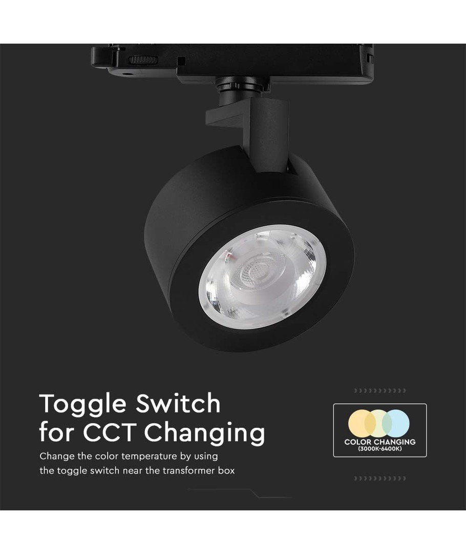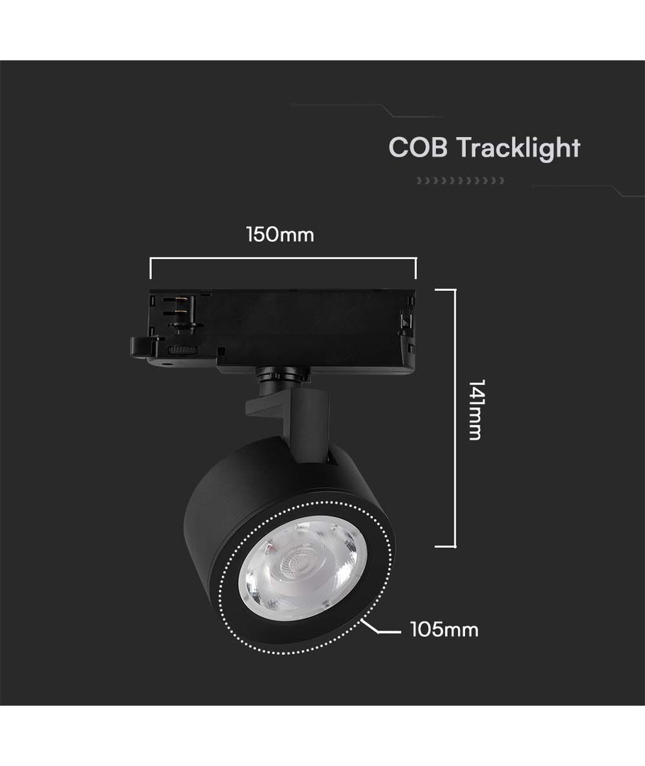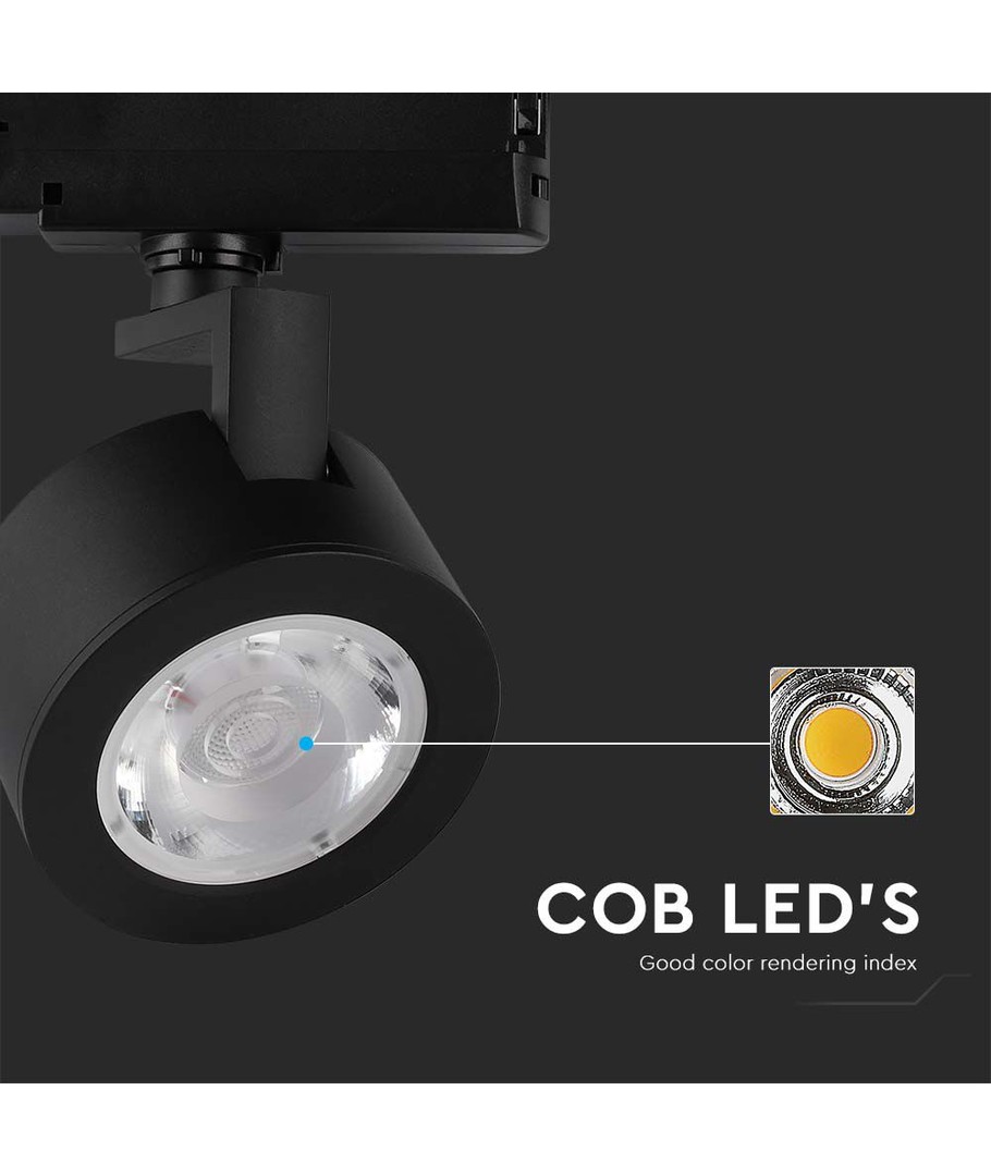 30W LED COB Railspot, 3-in-1 Zwarte Behuizing