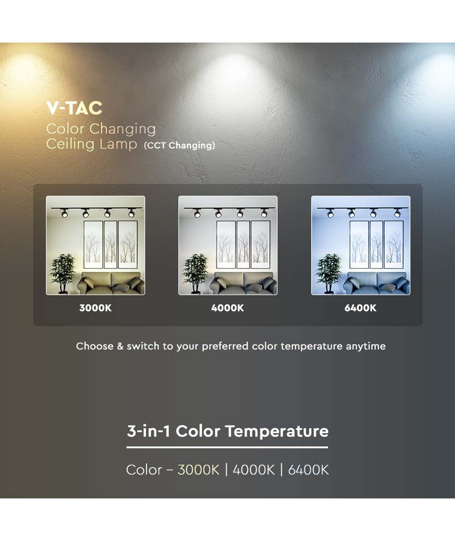 30W LED COB Railschijnwerper - 3-in-1 Zwarte Behuizing V-TAC Uitklappen