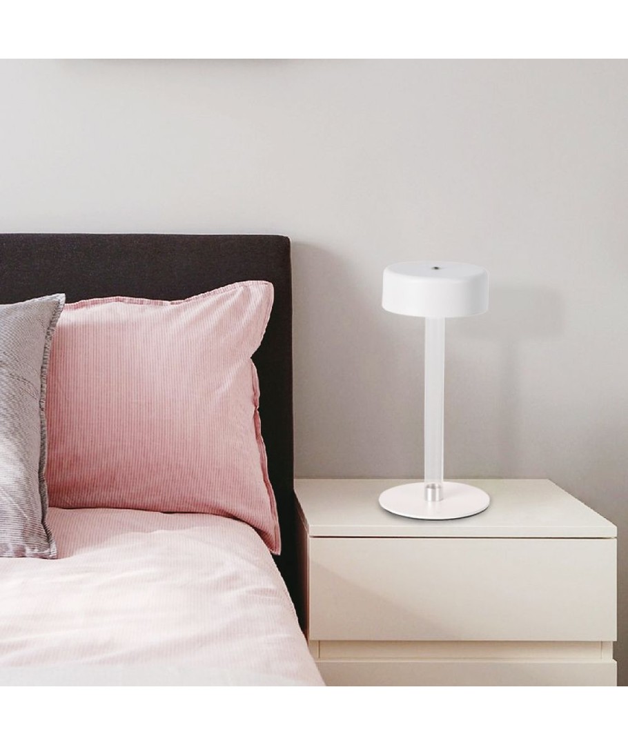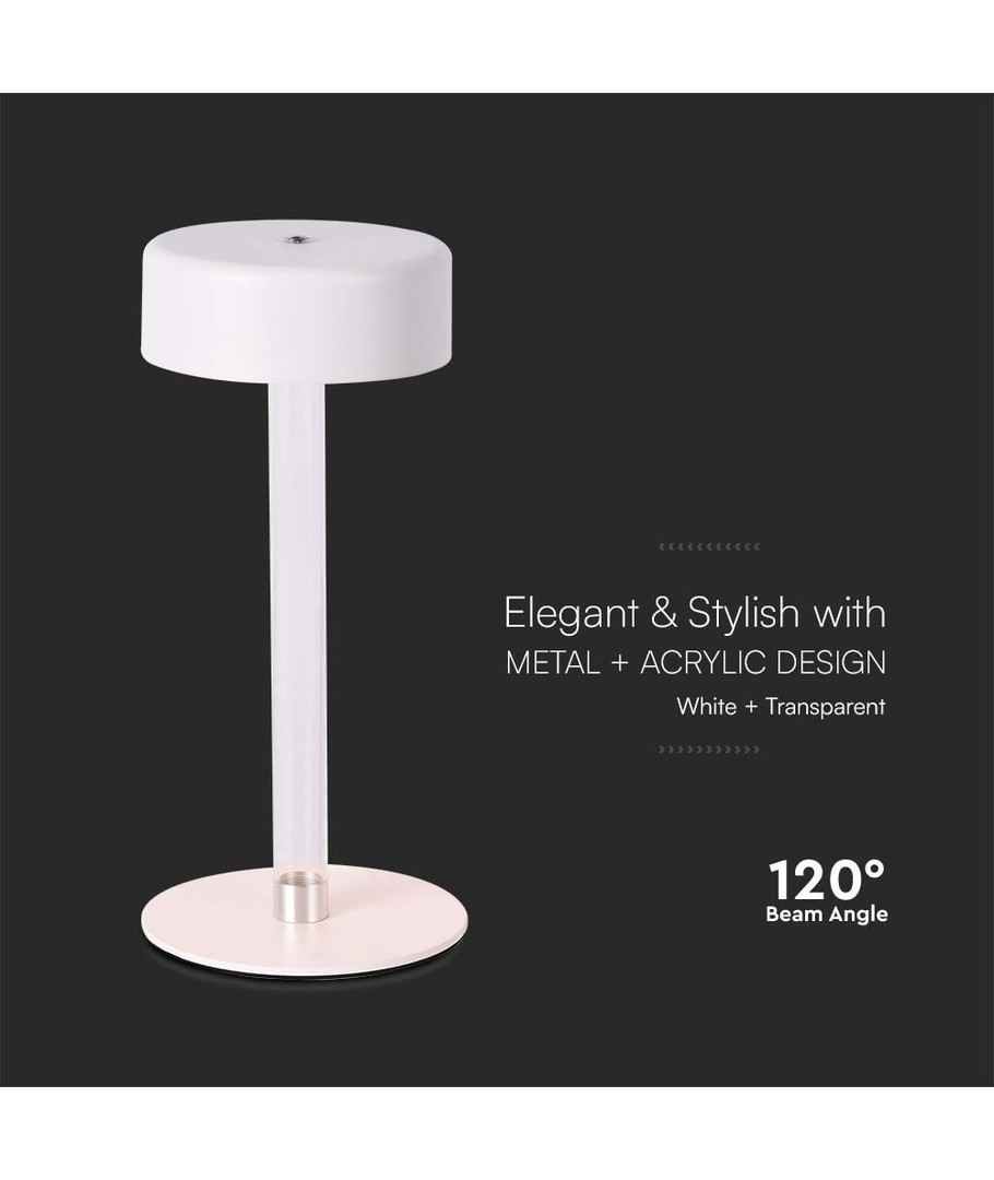 Onze stijlvolle tafellamp combineert functionaliteit en esthetiek. Hij is uitgerust met een 3W LED geïntegreerde lichtbron, die een aangename en energiezuinige verlichting levert met een lichtsterkte van 210 lumen. Het elegante ontwerp van de lamp met een witte afwerking en een transparante middenpilaar geeft elke ruimte een moderne en elegante uitstraling.