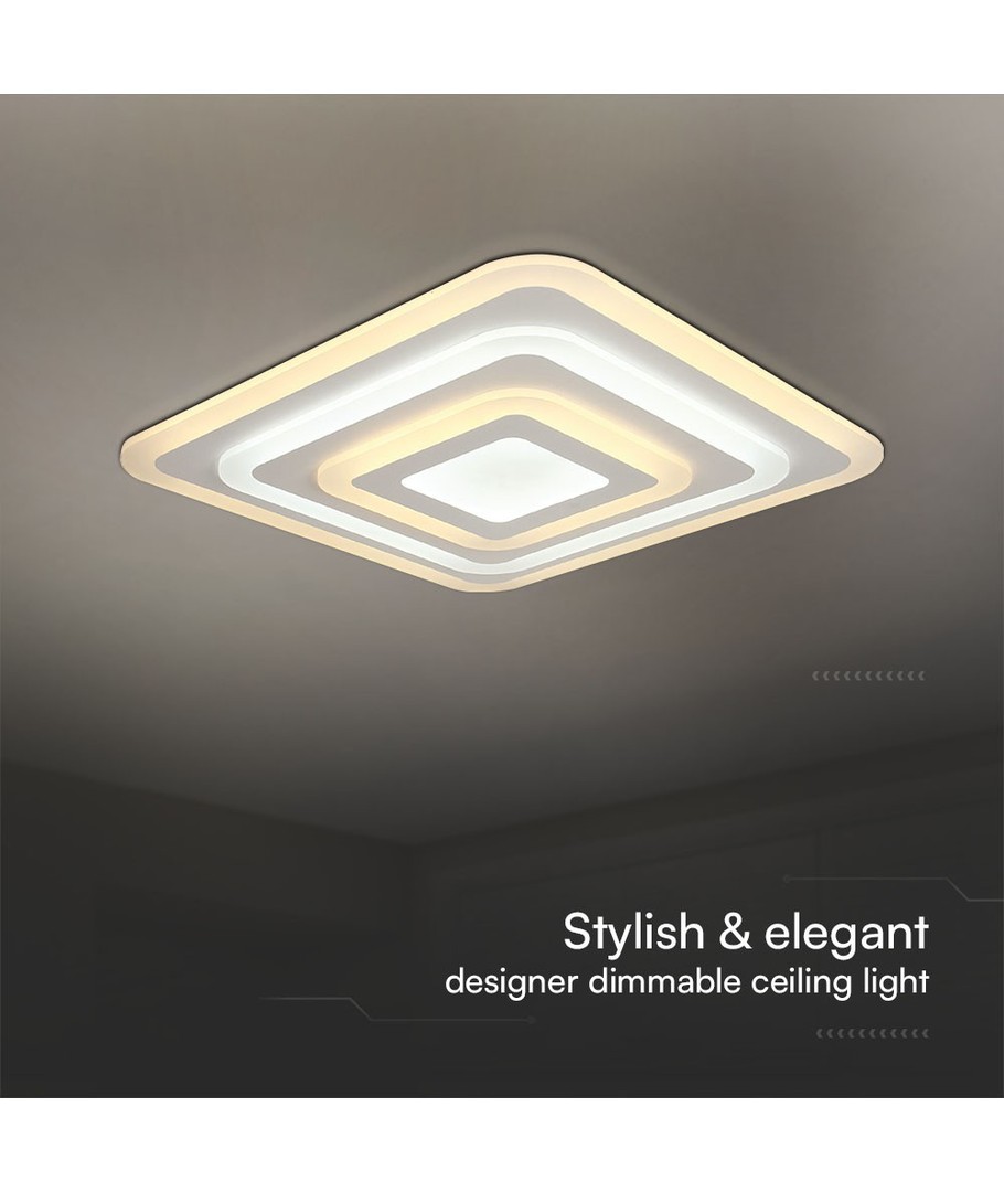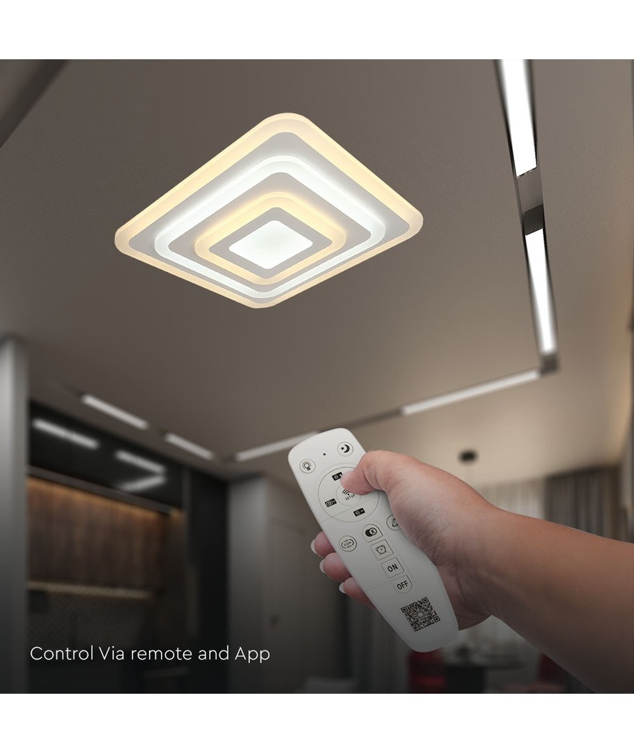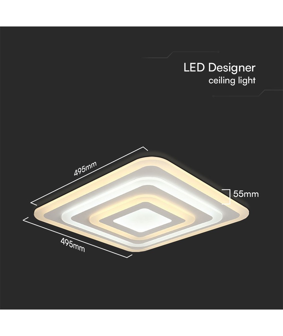De afmetingen van de plafondlamp van 495 x 55 x 495 mm maken het een ruimtebesparende oplossing die eenvoudig in uw huis kan worden geïntegreerd. De witte kleur geeft een strak uiterlijk dat in elk interieur past.