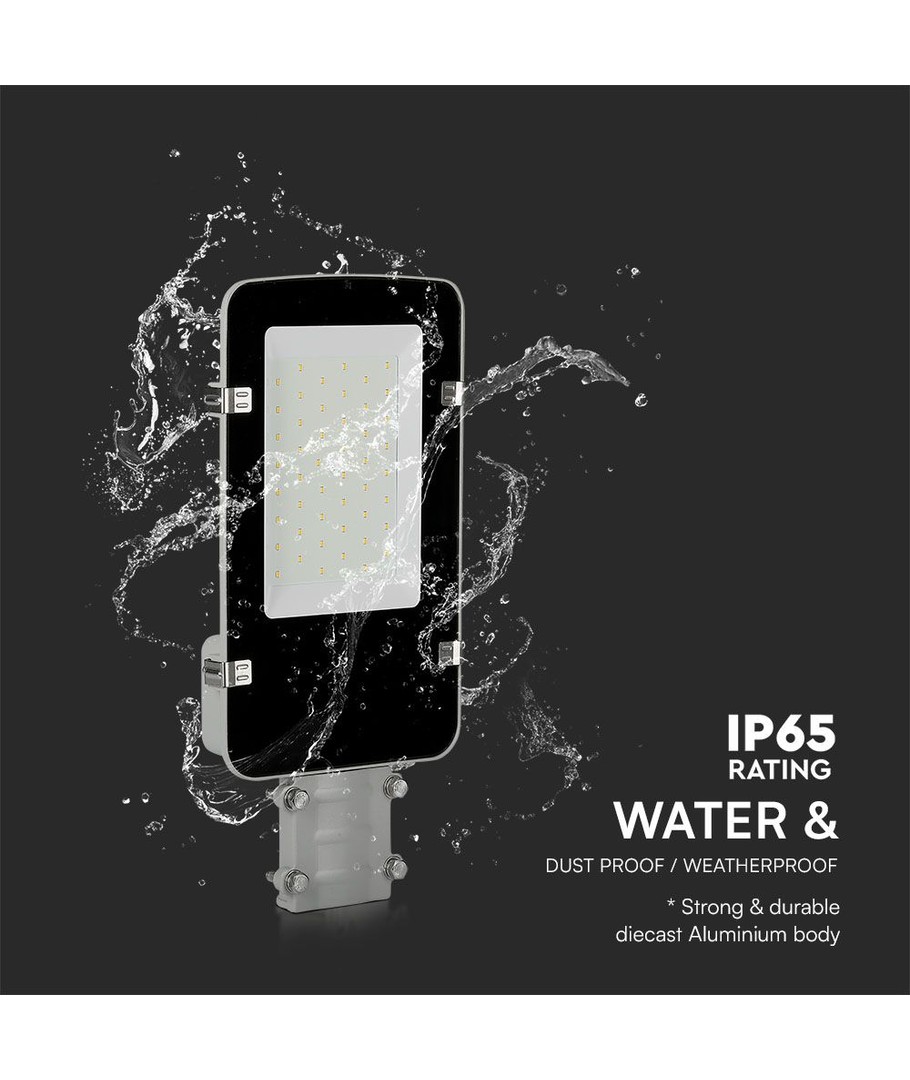Ontworpen voor zowel duurzaamheid als prestaties, wordt deze straatverlichting geleverd in een elegant grijs huis met afmetingen van 467,6 x 60 x 214,6 mm. Met een IP65-classificatie is hij geschikt voor buitengebruik en bestand tegen waterdruppels en regen.