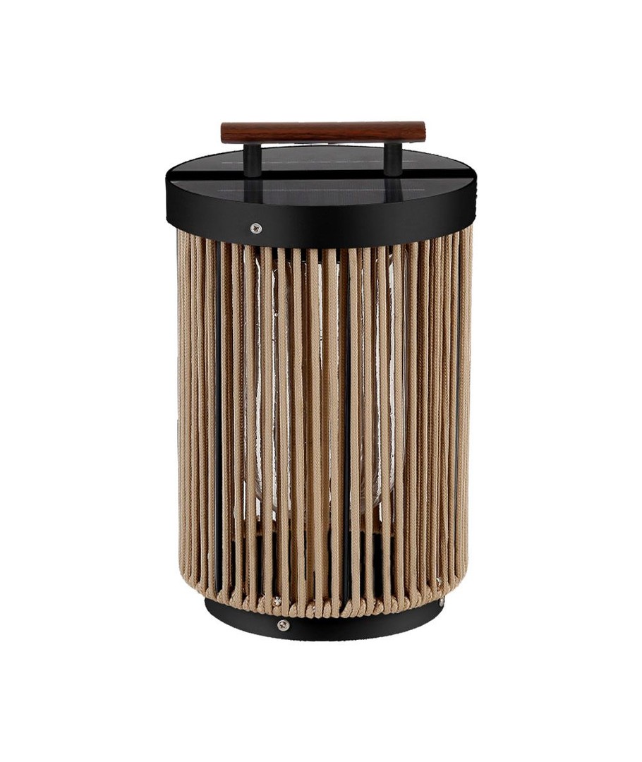 De zwarte afwerking gecombineerd met een henneptouwgreep en houten handvat maakt de lamp een stijlvolle toevoeging aan elke buiteninrichting. De natuurlijke uitstraling past goed in zowel moderne als traditionele tuinen.