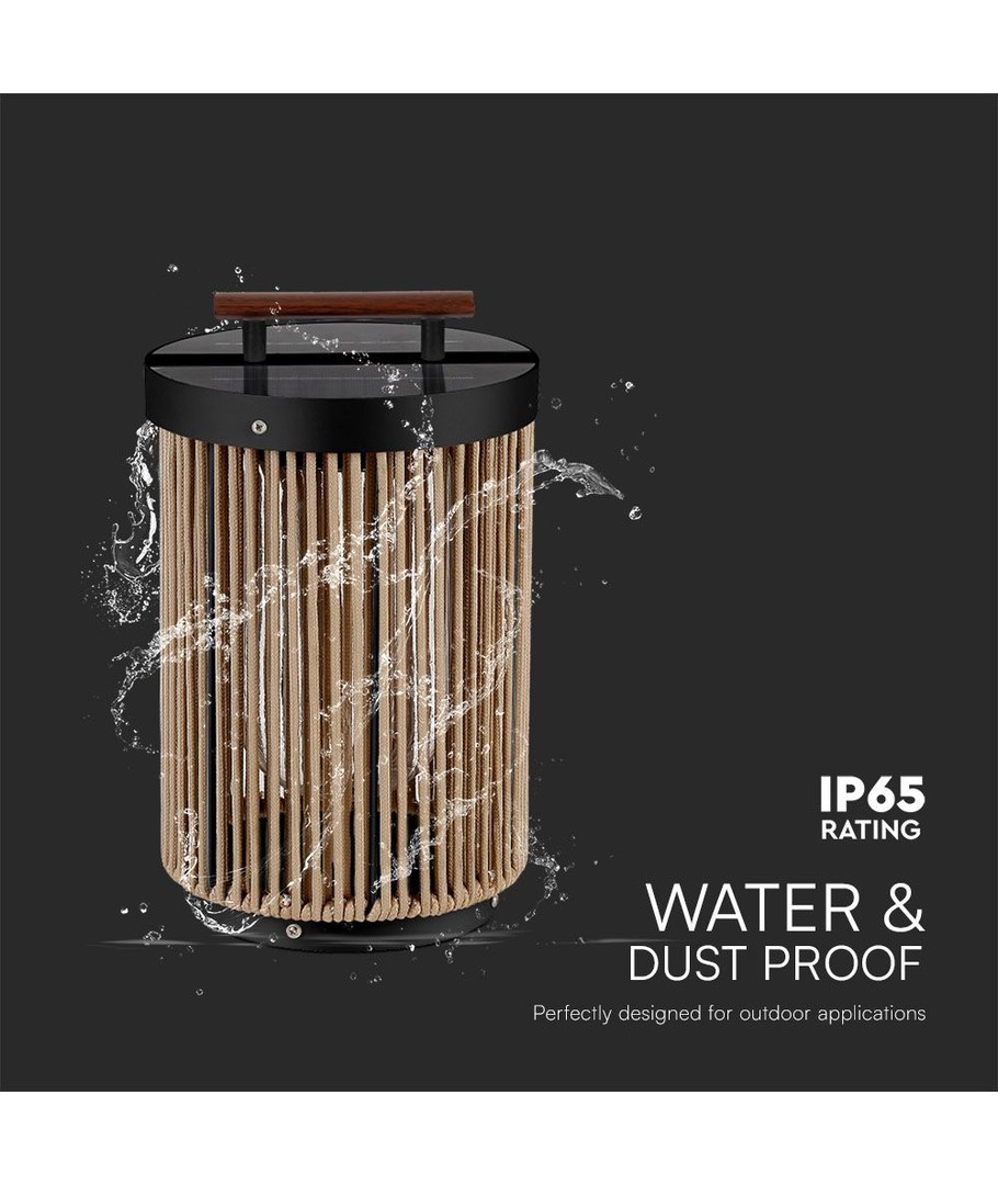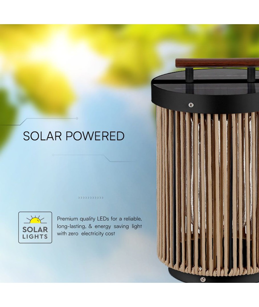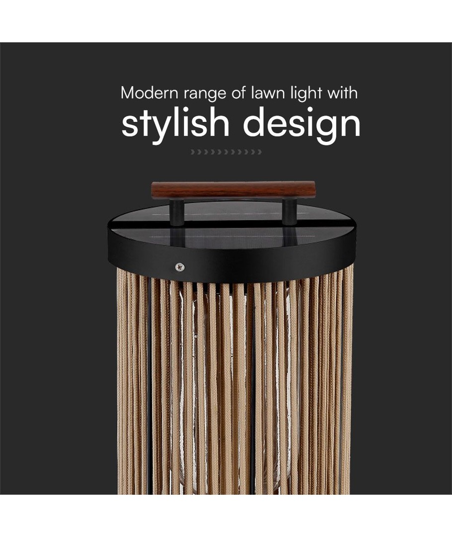 2,4W Tuinlamp - LED, Zonne-energie, 3000K, Zwart+Henneptouw met Houten Handvat V-TAC Uitklappen