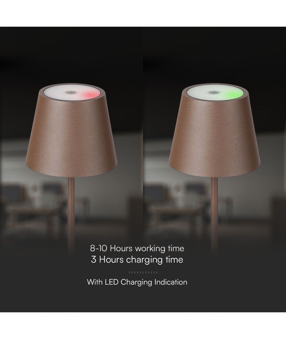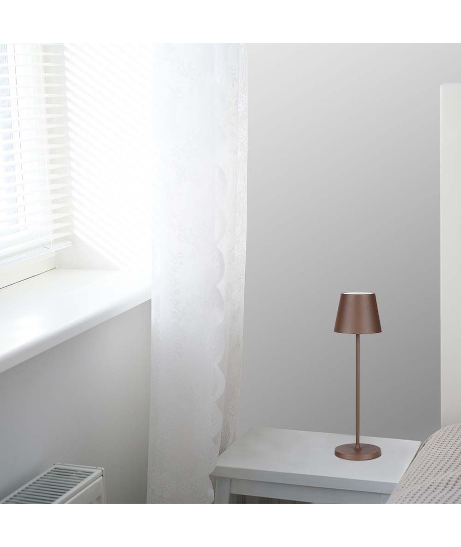 De afmetingen van de lamp van 275 x 70 mm maken hem compact en gemakkelijk te plaatsen op het bureau, nachtkastje of zelfs in de woonkamer. Hij heeft een elegante zand corten afwerking die een moderne touch toevoegt aan elk interieur.