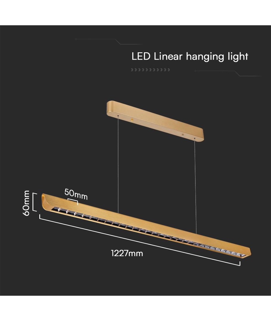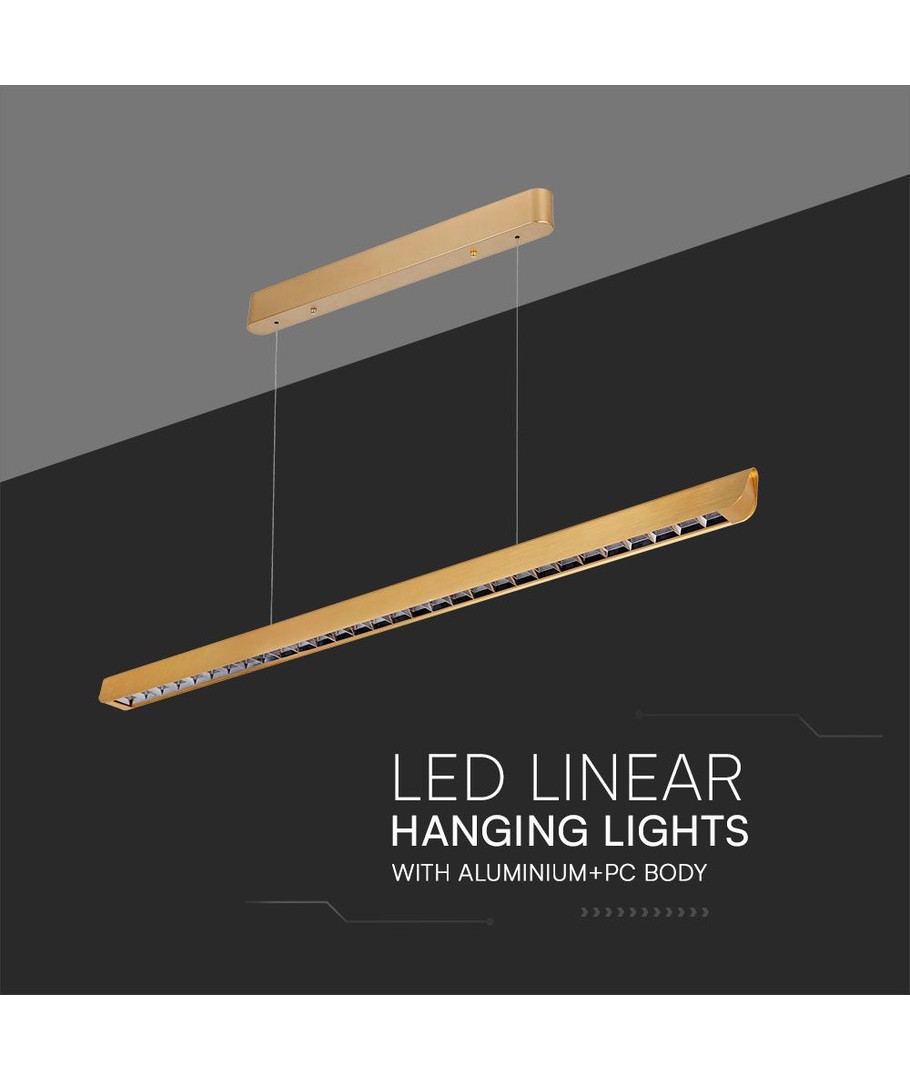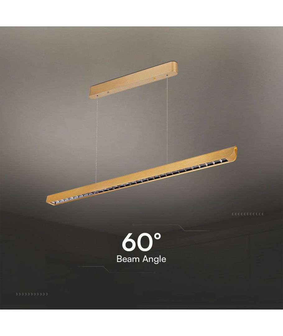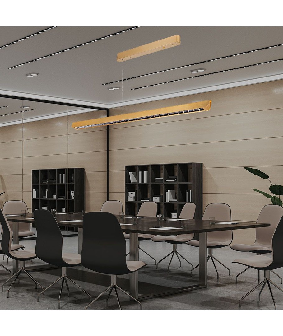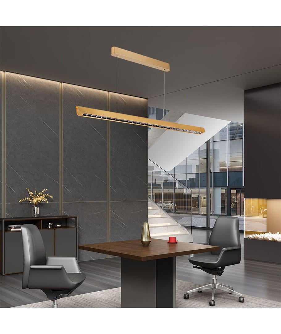Deze LED-hanglamp combineert elegant design en effectieve verlichting in een prachtige gouden afwerking. Perfect voor moderne woningen of kantoren waar stijl en functionaliteit hand in hand gaan.