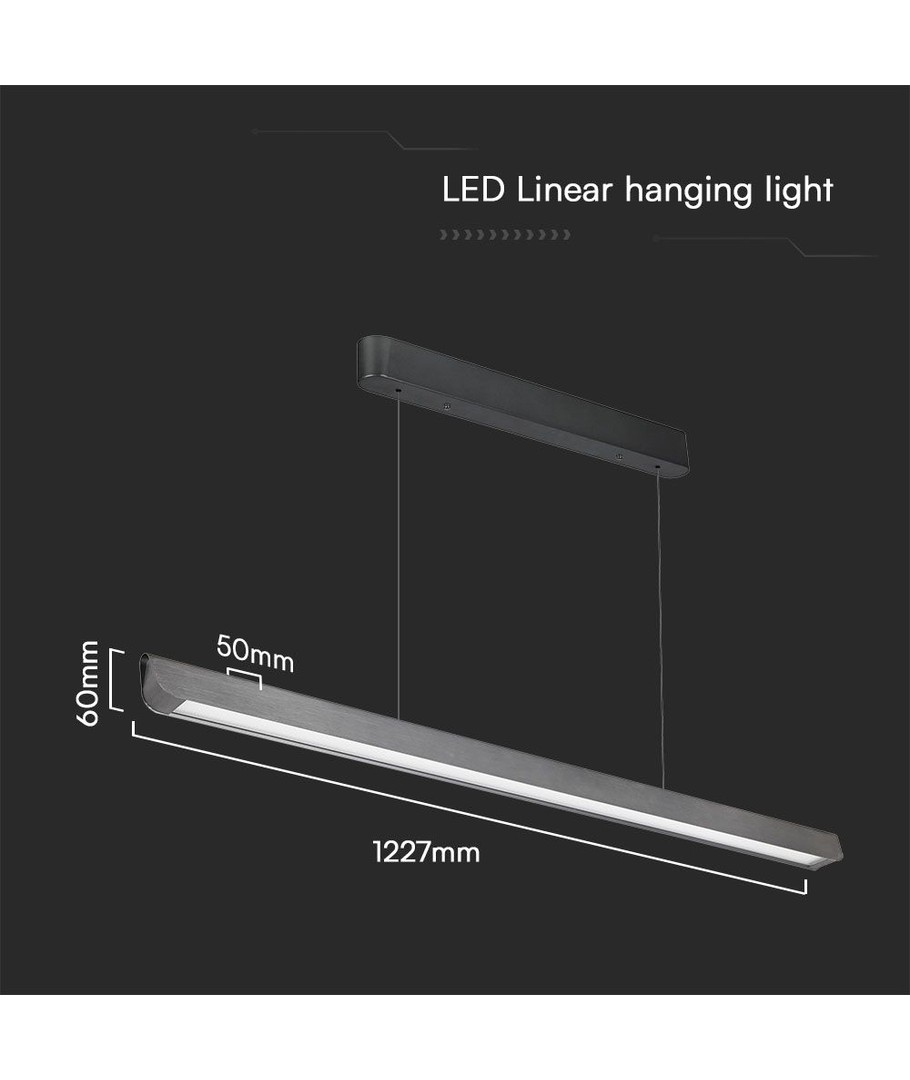 Productvoordelen:De afmetingen van deze lineaire hanglamp zijn 1227 x 50 x 60 mm, waardoor hij ideaal is voor zowel zakelijk als privégebruik. Ontworpen in een mooie matte grijze afwerking, past hij in elk modern interieur.