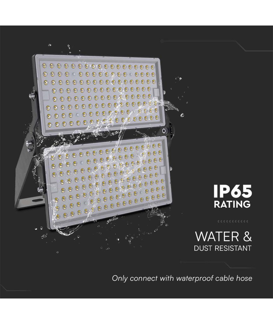 De schijnwerper is IP65-gecertificeerd, wat betekent dat hij bestand is tegen waterdruppels en regen, waardoor hij betrouwbaar is voor buiteninstallaties.