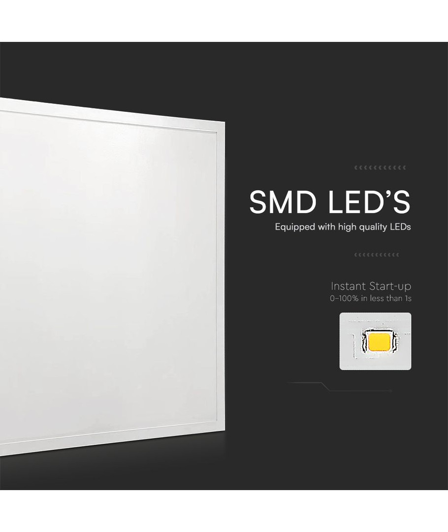 De flikkervrije technologie in dit paneel voorkomt visuele belasting, waardoor het bijzonder geschikt is voor werkplekken en plaatsen waar comfortabele verlichting nodig is. Het gebruikt LED van de hoogste kwaliteit voor minimale vermindering in lichtsterkte over tijd, wat zorgt voor een constant goede lichtopbrengst.