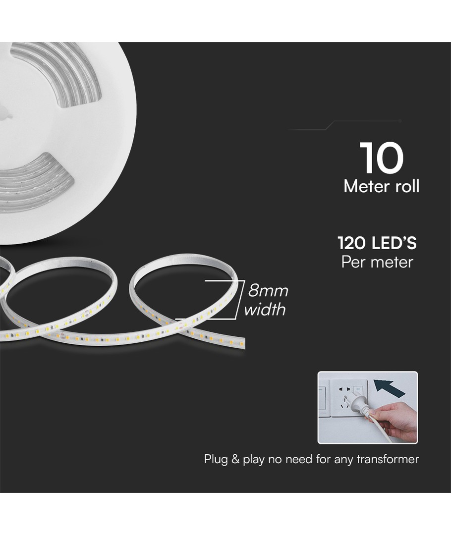 Ontworpen voor flexibiliteit meet de strip slechts 8 mm in breedte, zodat hij gemakkelijk in verschillende omgevingen kan worden geïntegreerd zonder opdringerig te zijn. Met een beschermingsgraad van IP65 is hij perfect voor buitengebruik, omdat hij waterdruppels en regen probleemloos kan weerstaan.