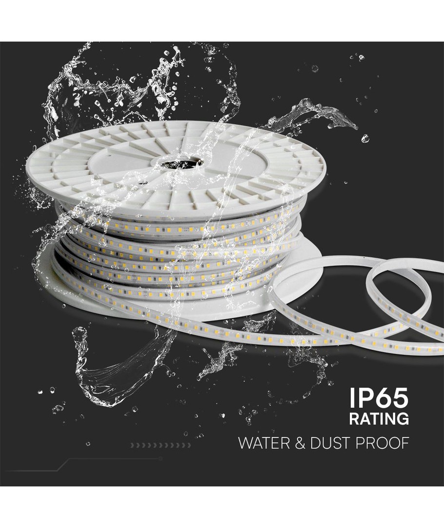 De afmetingen zijn bescheiden met slechts 8 mm, waardoor hij gemakkelijk te installeren is, zelfs op krappe plekken. Met een IP65-classificatie is deze LED-strip ontworpen voor zowel binnen- als buitengebruik, omdat hij bestand is tegen waterdruppels en regen.