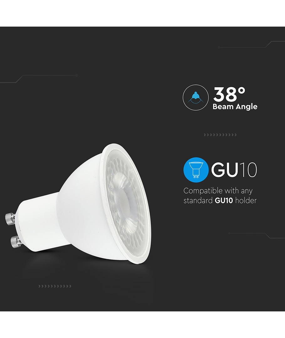 Ervaar de kracht van een 7,5W GU10 plastic spotlight die zorgt voor gerichte en precieze verlichting. Met een lichtsterkte van 610 lumen en een stralingshoek van 38 graden krijg je gecontroleerd licht, perfect voor taakverlichting en gerichte werkzaamheden.