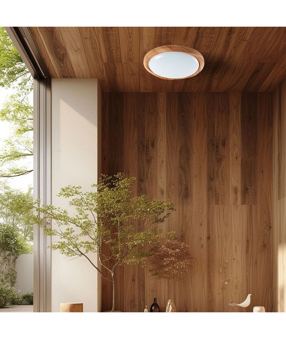Deze plafondlamp is niet alleen een lichtbron; het is een onderdeel van je interieurstijl. Het moderne design met de stijlvolle houtlook voegt warmte en elegantie toe aan je huis.