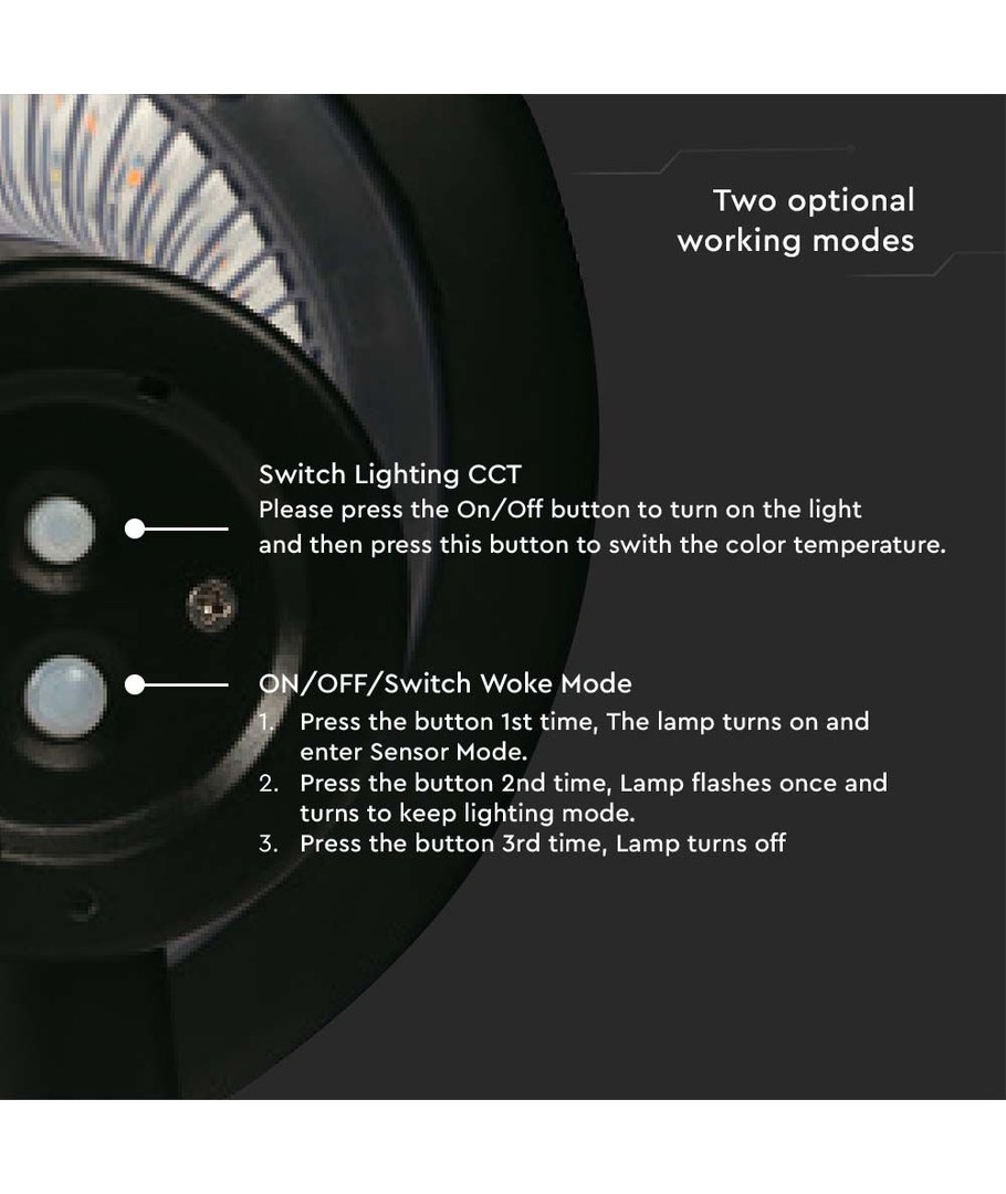Met een lichtsterkte van 2200 lumen zorgt deze zonne-lamp voor uitstekende verlichting, zelfs in de donkerste hoeken. Met een vermogen van 15W gecombineerd met een kleurtemperatuur van 6000K+4000K, kan het licht worden aangepast voor zowel scherp als zacht wit licht, afhankelijk van je behoefte.