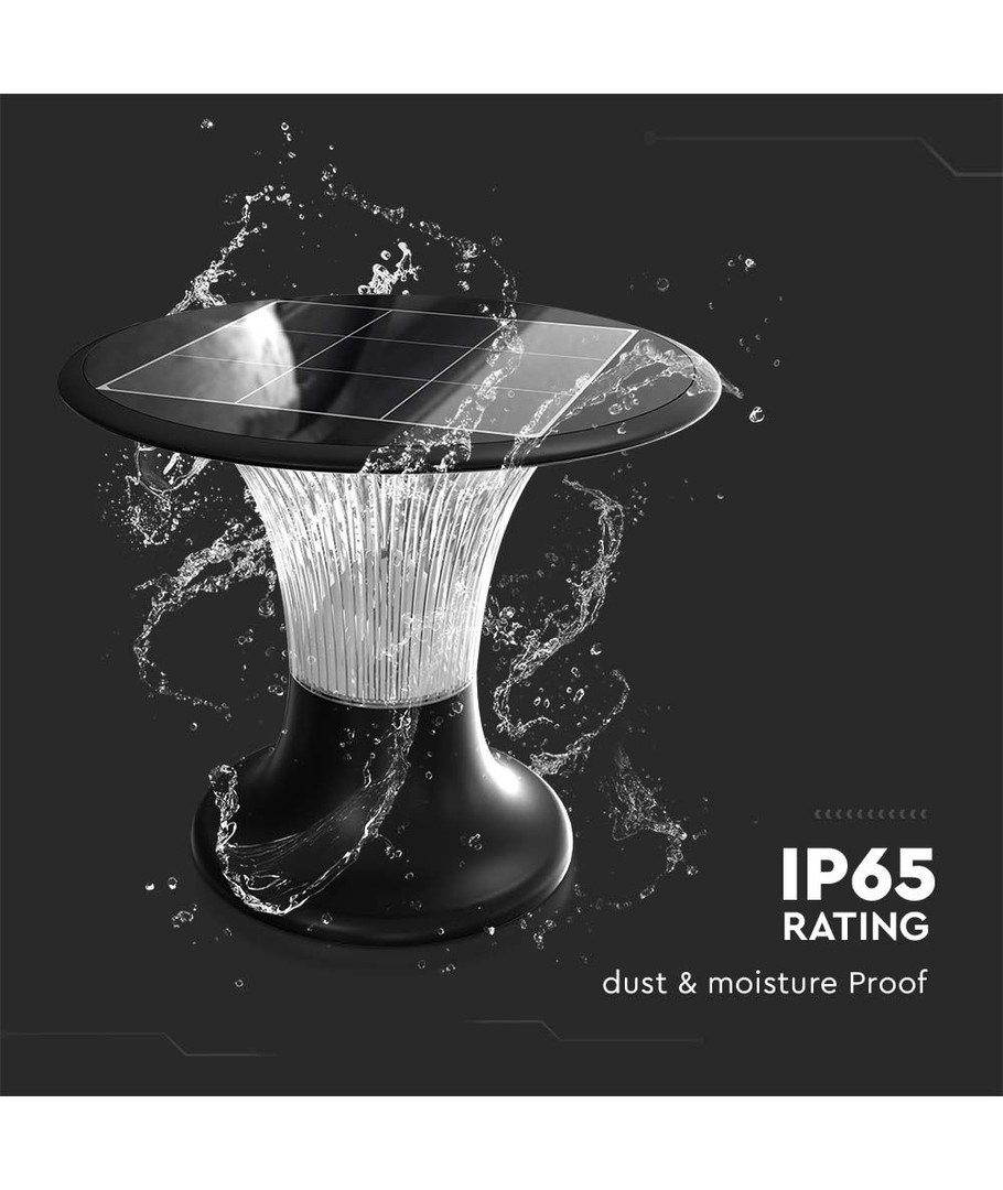 De zonne-lamp maakt deel uit van de V-Tac Pro serie, die wordt geleverd met een geruststellende 3 jaar fabrieksgarantie. Met afmetingen van 257 x 217 mm en een robuuste constructie garandeert hij een lange levensduur. Hij heeft een IP65-classificatie, wat betekent dat hij buiten kan worden gebruikt, omdat hij bestand is tegen waterdruppels en regen zonder problemen.