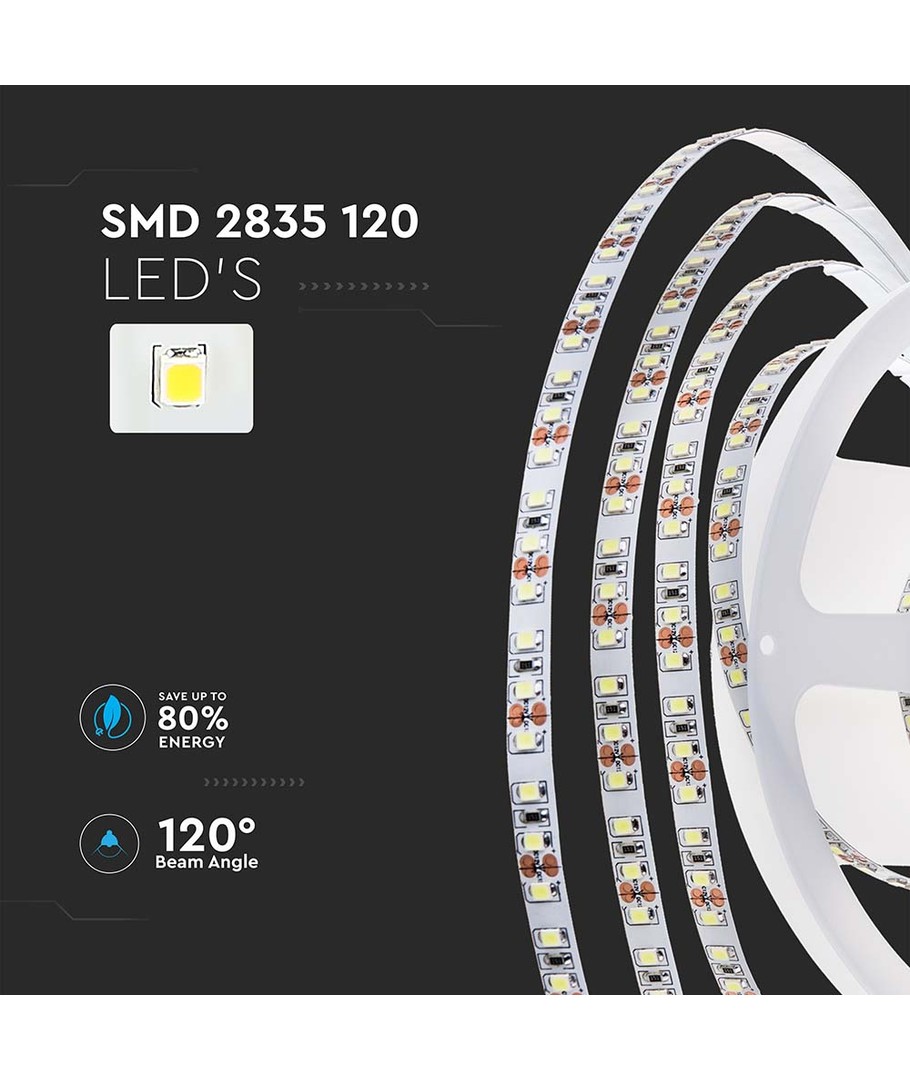 Deze LED strip licht biedt een optimale lichtbeleving en is perfect voor wie een warm en aangenaam licht wil toevoegen aan huis of werkruimte. Met 120 LED per meter en 8W/m is deze lichtbron zowel efficiënt als lichtsterk.