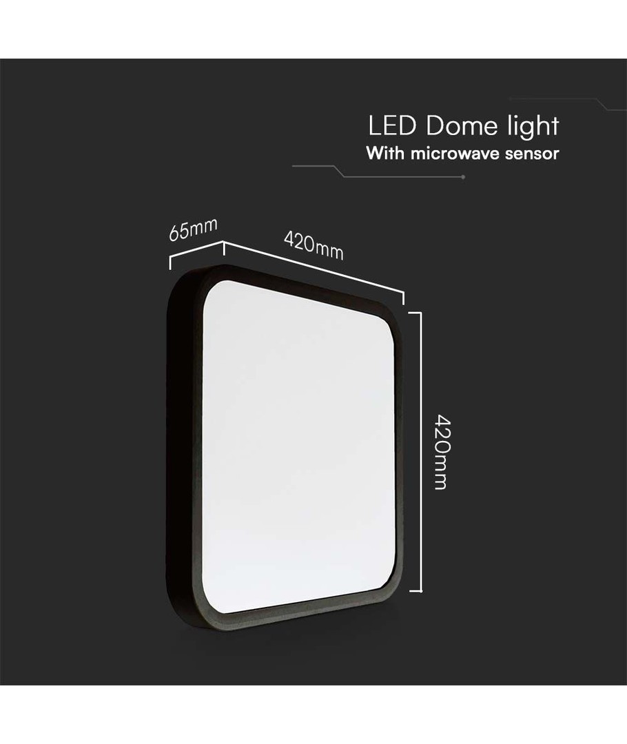 Ontworpen met een zwarte rand en afmetingen van 420 x 65 x 420 mm, past dit licht discreet in de meeste omgevingen. De vierkante vorm en neutrale kleurtemperatuur zorgen ervoor dat verlichte objecten er natuurlijk uitzien zonder blauwe of gele tinten.