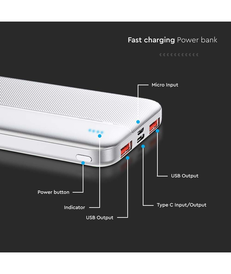 10000mAh Snelladende Powerbank - Wit is een compacte en efficiënte oplossing voor het opladen van uw apparaten onderweg.