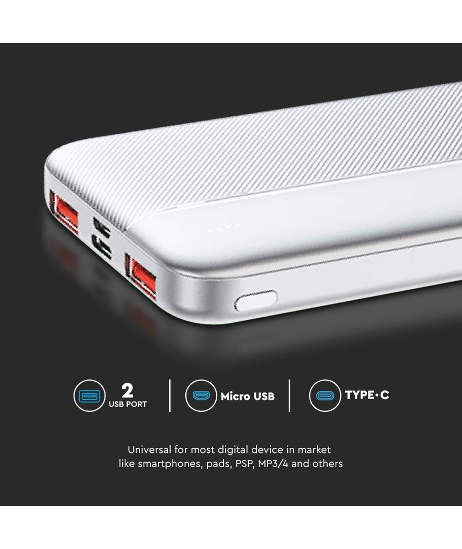 10000mAh Powerbank, 22.5W - Ultra slim, aluminium, wit, fast charger V-TAC Uitklappen