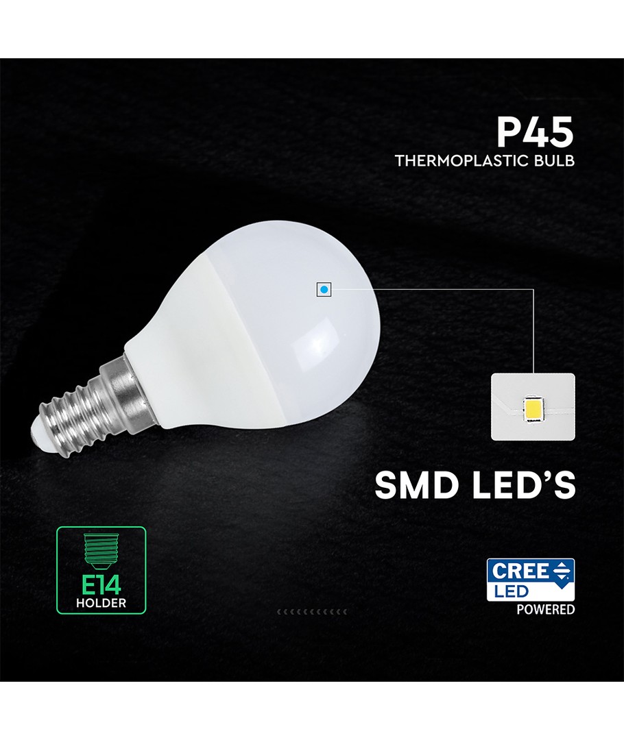 P45 VT-270 LED 6,5W E14 - kunststof lamp met Cree-chip en 6 jaar garantie.