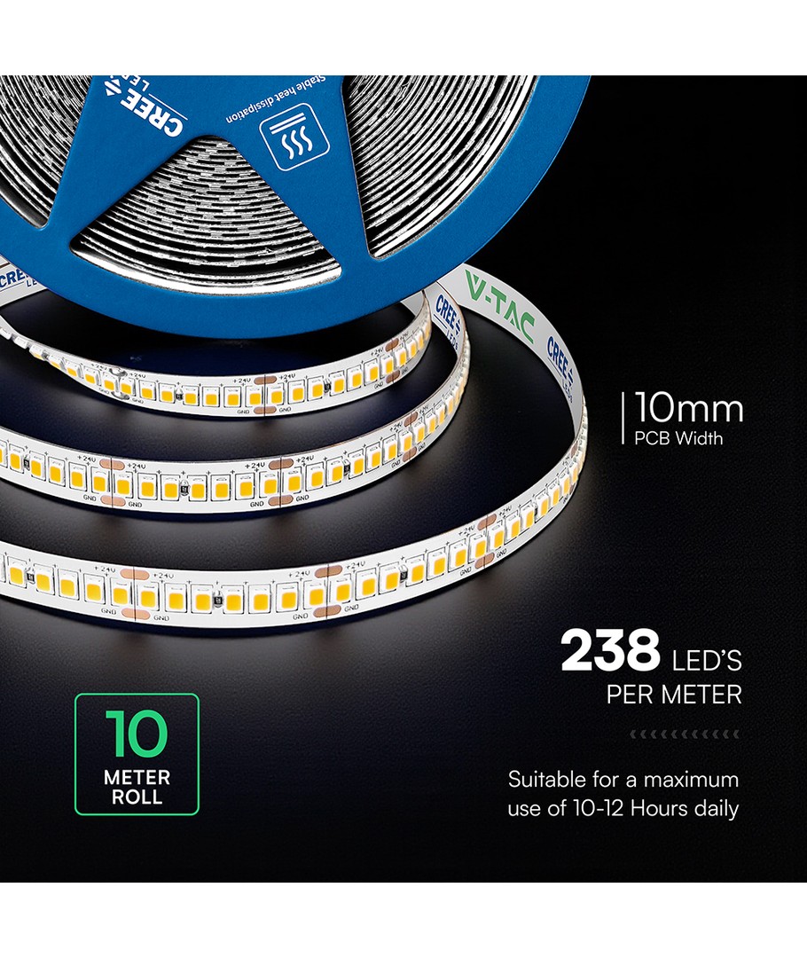 5m 18W/m LED strip, 238 LED per meter - 24V, 135lm/W, IP20, 4000K, SMD2835 V-TAC Uitklappen