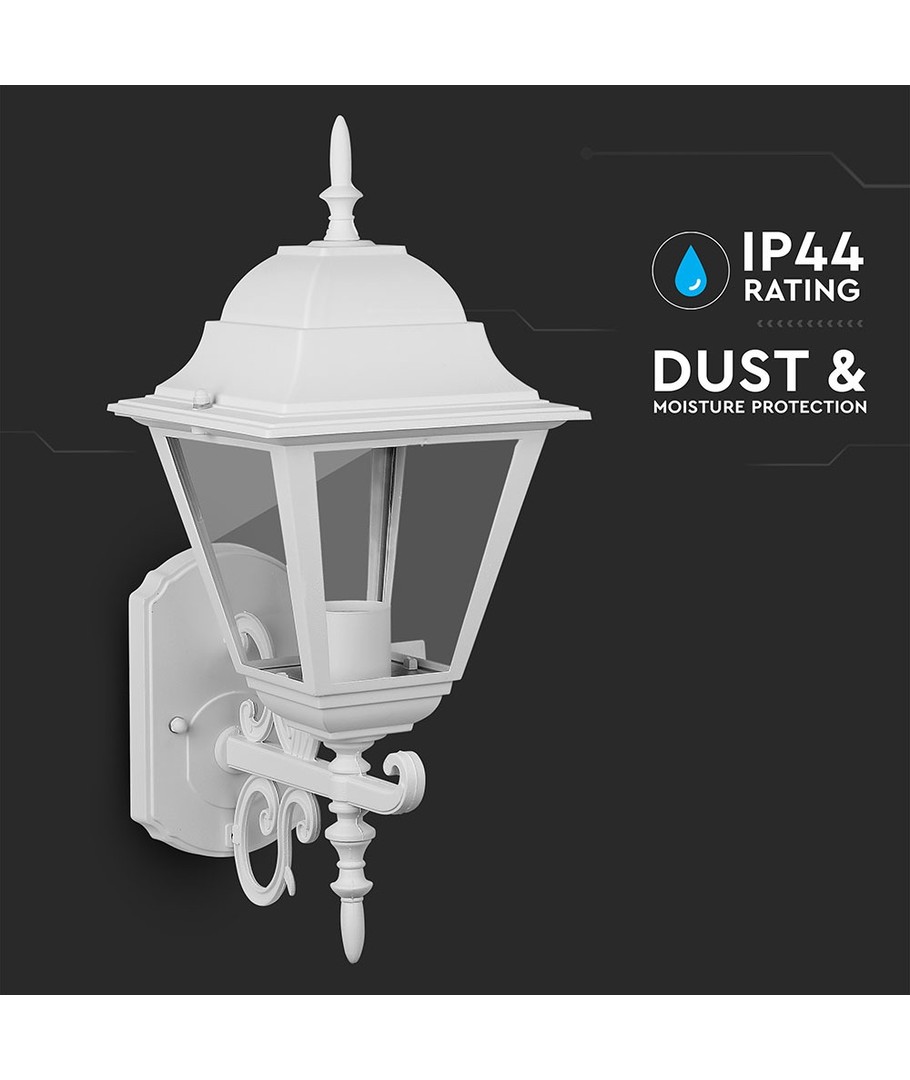 Vt-761 wandlamp E27 - groot, mat wit (omhoog) is een moderne en stijlvolle wandlamp ontworpen voor buitengebruik.