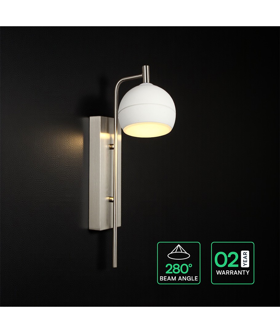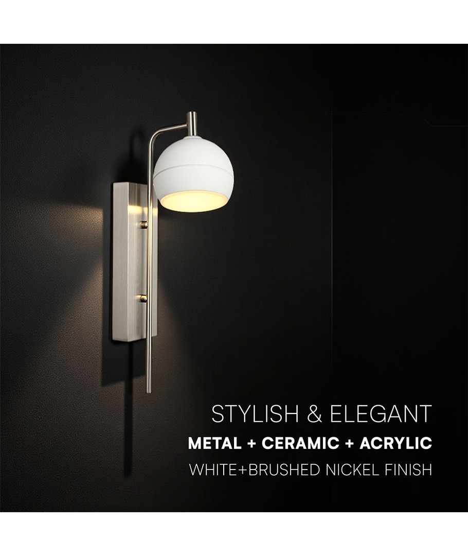 Ervaar stijlvolle verlichting met de VT-89021 wandlamp in geborsteld nikkel en wit.